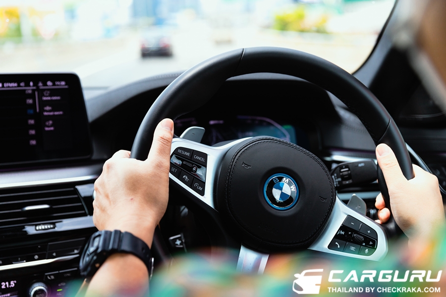 BMW 530e M Sport ใช้งานได้ในทุกย่านความเร็วตั้งแต่รถเริ่มเคลื่อนที่ เมื่อกดใช้งานระบบจะตั้งความเร็วเริ่มต้นไว้ที่ 30 กิโลเมตรต่อชั่วโมง และสามารถปรับบวกหรือลบความเร็วเพิ่มขึ้นตามต้องการได้ และยังตั้งควบคุมความเร็วสูงสุดได้อีกด้วย เช่น ตั้งค่าครุสคอนโทรลไว้ที่ 110 กิโลเมตรต่อชั่วโมง และตั้งจำกัดความเร็วเอาไว้ที่ 120 กิโลเมตรต่อชั่วโมง หรือจะไม่ตั้งเอาไว้ก็ได้ครับ ระบบนี้จะทำงานแปรผันความเร็วตามรถคันด้านหน้าจนลดความเร็วถึงจุดหยุดนิ่งซึ่งมันก็ปกตินะ? ..