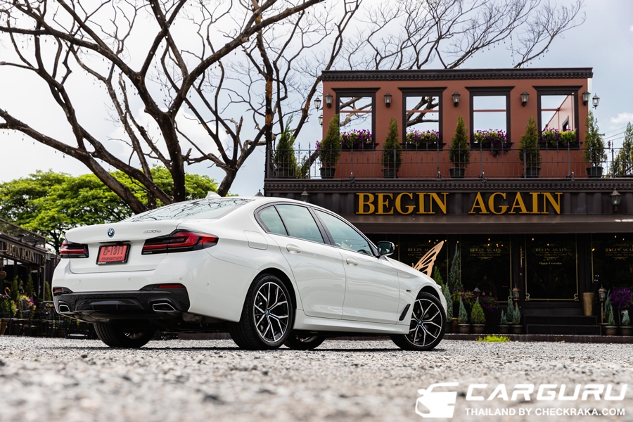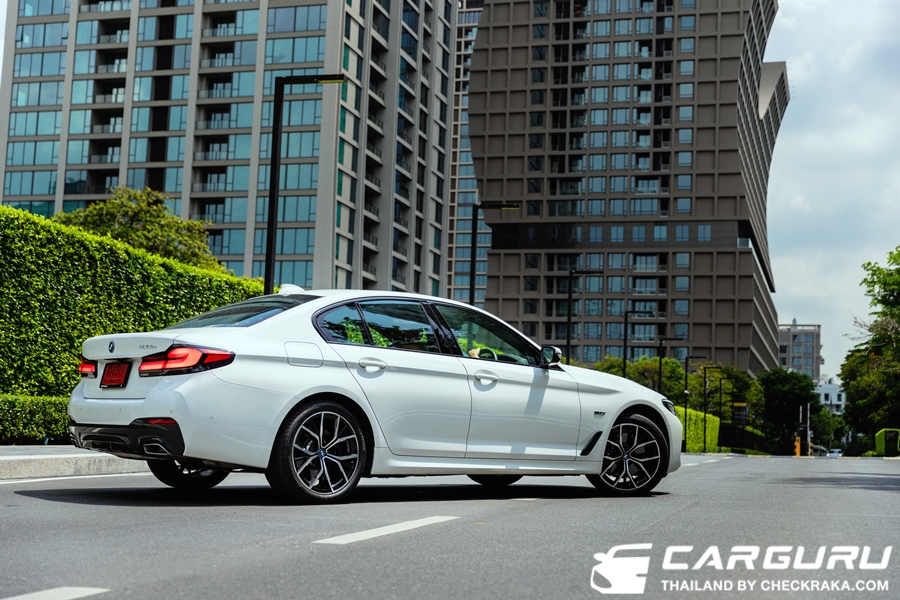 BMW 530e M Sport ใช้เครื่องยนต์เบนซิน 4 สูบ BMW TwinPower Turbo 2.0 ลิตร กำลังสูงสุด 184 แรงม้า แรงบิด 300 นิวตันเมตร ก็นับว่าแรงเอาเรื่องแล้ว กับการแบกน้ำหนักตัวและแบตตอรี่ขนาด 1,770 กิโลกรัม มากขึ้นจากรุ่นดีเซลปกติ 1,560 กิโลกรัม ราว ๆ 210 กิโลกรัมเท่านั้นเอง เทียบเท่าคนตัวใหญ่น้ำหนัก 70 กิโลกรัม 3 คนนั่งไปด้วยตลอดทาง สามารถทำอัตราสิ้นเปลืองเฉลี่ยในและนอกเมืองรวมกันได้ 13 กิโลเมตรต่อลิตร ใช้ความเร็วเดินทางทั่วไป 60 - 120 กิโลเมตรต่อชั่วโมง และมีรถติด ๆ แบบจอดนิ่งผสมกันไปด้วย สำหรับรถคันใหญ่และผู้ที่ขับรถ BMW เครื่องเทอร์โบกินระดับนี้ถือว่าชิว ๆ ครับ แลกกับสมรรถนะและความเร้าใจในเทคโนโลยี เพราะว่ารุ่นที่เป็นเครื่องเบนซินล้วนไม่มีไฮบริดกินดุเดือดกว่านี้เยอะเลย