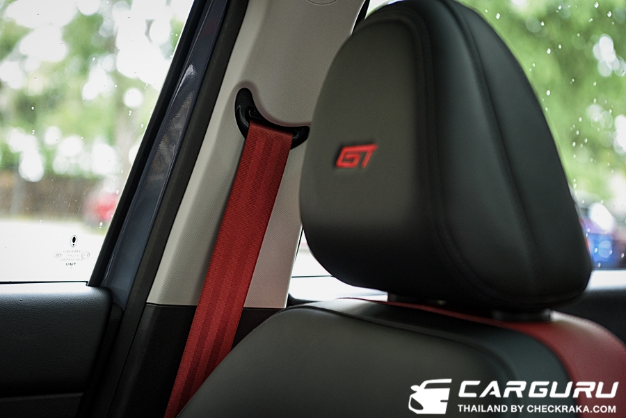 • ภายในสีแดง-ดำ ด้วยการตกแต่งแบบทูโทนสีดำและสีแดงเป็นเอกลักษณ์ ทั้งพวงมาลัย เบาะนั่ง คอนโซล รวมถึงพนักพิงศีรษะที่มีตราสัญลักษณ์ GT และเข็มขัดนิรภัยสีแดง