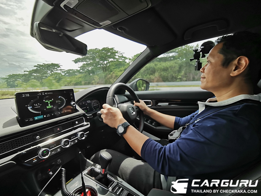 และพระเอกในบทความนี้คือ Civic e:HEV RS ที่ได้ร่วมทดสอบขับขี่บนถนนจริงเส้นทางกลางเมืองเชียงราย - สามเหลี่ยมทองคำระยะทางกว่า 150 กิโลเมตร ซึ่งอาจจะไม่ได้ขับเยอะมากมายแต่ก็พอสัมผัสได้ถึงอัตราเร่งและช่วงล่างที่ความเร็วสูง กับการสลับกันขับกับสื่อร่วมทางคนละครึ่งสรุปแล้วได้ขับไม่ถึง 100 กิโลเมตรต่อคน จึงอาจบอกรายละเอียดการขับขี่ได้ไม่มากนัก