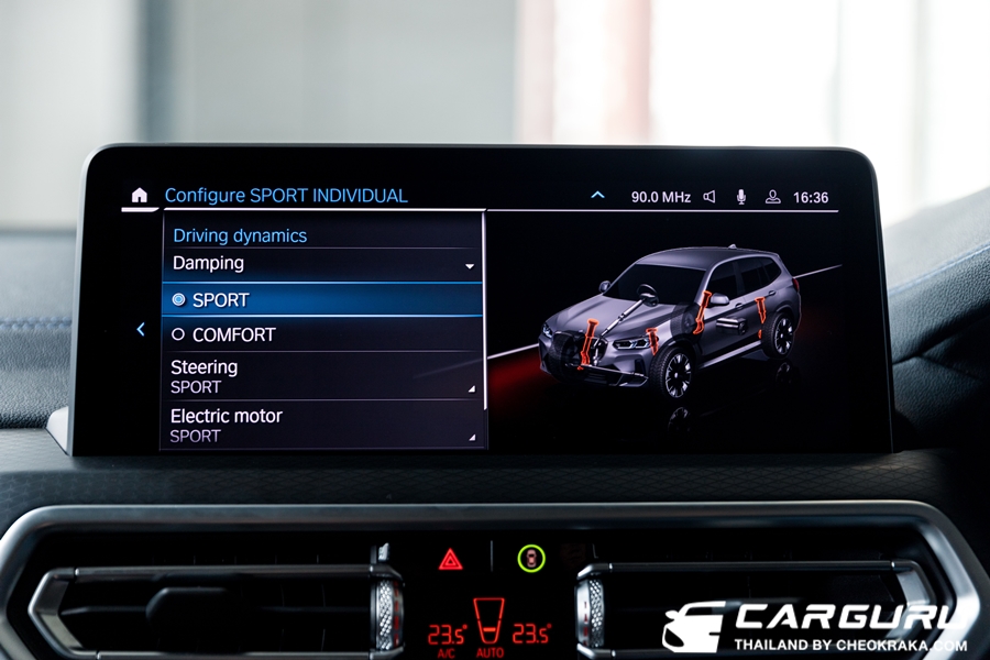 นอกจากนี้ให้แต่ละโหมดยังสามารถตั้งค่าน้ำหนัก กำลัง ช่วงล่าง แยกอิสระได้ตามต้องการอีกด้วย และเมื่อระบบช่วงล่างสามารปรับได้ จึงอาจจะเล่าความรู้สึกได้ไม่แม่นยำนัก เท่าที่ได้ขับมาหลายวันจะใช้โหมด Comfort มากที่สุด โหมดนี้จะให้ความนุ่มระดับกลาง ๆ แต่ยังซ่อนความแข็งและหนึบเยอะอยู่ ในขณะที่ขับความเร็วต่ำ พวงมาลัยเบาควบคุมง่าย เมื่อขับผ่านผิวถนนขรุขระหรือเนินกระดกก็จะกระเทือนมากหน่อย ส่วนในความเร็วสูงกลับให้ทั้งความหนึบและเกาะถนนมั่นใจได้ น้ำหนักพวงมาลัยดีไม่เบาเกินไป