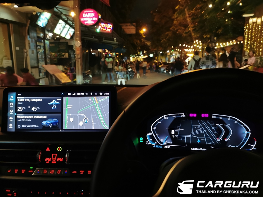 วันแรกรับรถ....เริ่มจากรับรถ BMW IX3 M Sport จากตึกออลซีซั่นส์ถนนวิทยุขับมาหาสถานที่ถ่ายรูปแถว ๆ ถนนราชประสงค์ก่อนหลังจากนั้นขับไปทำธุระถนนข้าวสารและเดินทางกลับบ้านวัชรพลก็ร่วม ๆ 40 กิโลเมตรเท่านั้น เหลือไฟในแบตฯ ประมาณ 70 - 80 เปอรเซ็นต์หรือระยะทางที่ใช้ได้ 268 กิโลเมตร และใช้ปลั๊กชาร์จฉุกเฉินที่บ้านทิ้งไว้กว่า 10 ชั่วโมงจนเช้าได้แบตฯ เกือบเต็ม 100 และระยะทางเพิ่มขึ้นมาที่ 313 กิโลเมตร