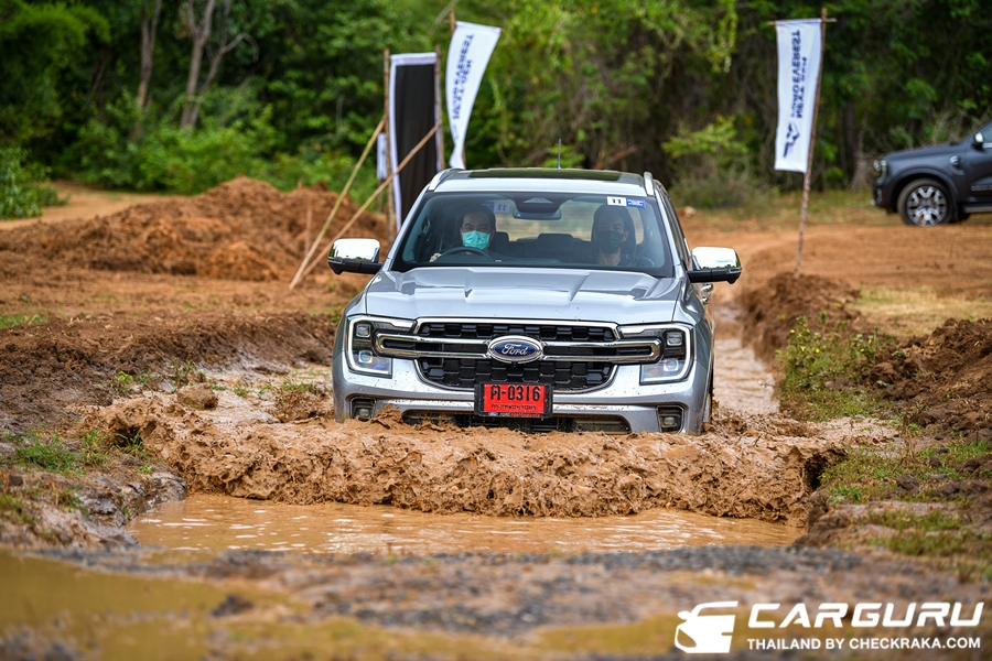 หลังจากที่ได้ทดลองในเส้นทางปิดที่ฟอร์ดไทยแลนด์จัดเอาไว้ทั้งการขับผ่านถนนกรวดและทราบแบบแห้ง หรือทางลื่นแบบเปียกที่ผสมโคลนและดินแดง ๆ รวมทั้งการทดลองปีนร่องหินกับการลงบ่อน้ำลึกประมาณ 50 ซม. พอจะสรุปได้ว่าขับสบายไม่แตกต่างจากถนนเรียบมากนัก ในการขับผ่านโขดหินที่มีร่องและความสูงสลับไปมา แต่เมื่อผ่านไปกลับให้ความนุ่มนวล ไม่เขย่าหรือโยนตัวมาอย่างที่คาดเอาไว้ ระบบช่วงล่างที่เก็บเสียงและซับแรงกระแทกรวททั้งแรงยกกับถีบของการปีนไต่ได้ค่อนข่างประทับใจ ในขณะที่ขับผ่านพื้นผิวถนนเป็นรองหินต่าง ๆ ตัวรถนั้นมีอาการโคลงหรือโยนตัวน้อยและไม่ทำให้ตัวผู้โดยสารในรถถูกเหวี่ยง นับว่าระบบช่วงล่างที่ปรับปรุงใหม่นั้นดีขึ้นและขับขี่สบายขึ้นไม่ว่าทางเรียบหรือทางลุย