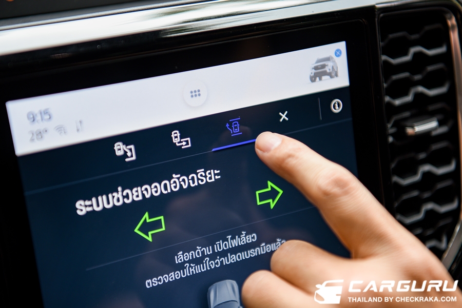 สุดยอดของอเมซซิ่งในฟอร์ด เอเวอเรสต์ เจเนอเรชันใหม่ คือ ระบช่วยจอดนี่แหละครับ ที่ใช้งานง่ายและใช้เพียงนิ้วเดียวเท่านั้น การใช้งานไม่ยุ่งยากเพราะมีบอกบนหน้าจอทุกขั้นตอน เริ่มต้นขับหาช่องจะจอดก่อน เมื่อเห็นช่องจอดก็กดเปิดระบบช่วยจอด เลือกรูปแบบการเข้าจอดว่าเป็นแบบจอดขนาดหรือถอยเข้าช่องจอด และทำตามคำแนะนำบนหน้าจอ ขับเดินหน้าจนระบบตรวจจับเจอช่องจอดจะสั่งให้หยุดรถ จากนั้นความสบายก็เริ่มขึ้น ระบบจะบอกให้ใส่ตำแหน่งเกียร์ "N" และใช้นิ้วกดที่สวิตช์ "P" ตรงคนโซลกลางค้างเอาไว้ จนกว่าจะจอดเสร็จสมบูรณ์ โดยผู้ขับไม่คอยปล่อยเบรกหรือบังคับพวงมาลัยใด ๆ ทั้งสิ้นครับ แต่ถ้าเกิดต้องการจะหยุดรถก็สามารถใช้เบรกได้ปกติอีกด้วย และนอกจากนี้ในขณะระบบช่วยจอดนี้ทำงาน จะตัดระบบคันเร่งไม่ว่าจะเหยียบแย่างไรก็ไม่ตอบสนองครับ เพราะรถกำลังควบคุมทั้งคันเร่ง พวงมาลัยและเบรกให้อัตโนมัติ