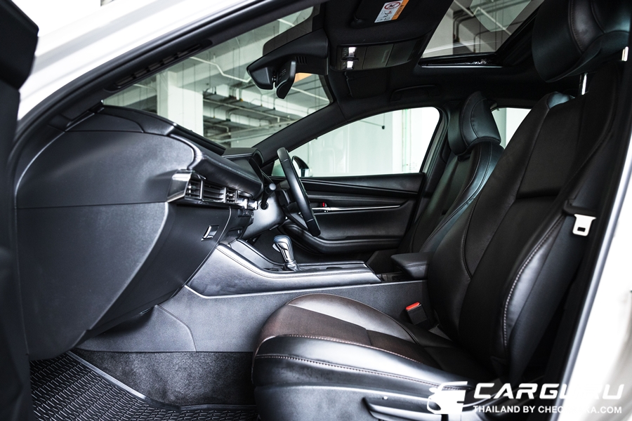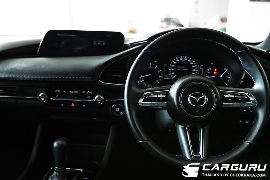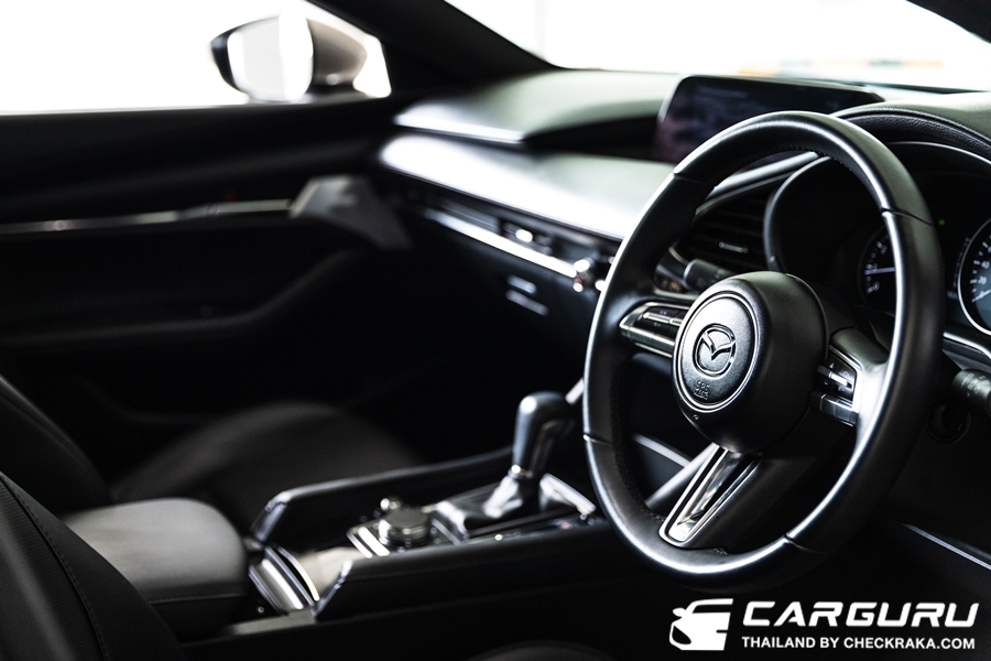 ภายในมาสด้า3 กล้าบอกเลยว่าเทียบชั้นยุโรปได้ทั้งเรื่องของดีไซน์ งานประกอบ วัสดุอุปกรณ์ และฟังก์ชั่นใช้งานที่เรียกว่าสวยงามลงตัวและไม่จำเจ โดยเฉพาะมาตรวัดแม้จะเป็นจอสี TFT ดิจิทัล แต่ยังคงความสปอร์ตด้วยมาตรวัดรูปวงกลมแบบอนาล็อค ที่ปรับเปลี่ยนรูปแบบแสดงการทำงานของรถได้ ได้อารมณ์สปอร์ตคลาสสิกแต่ทันสมัยตามยุค พร้อม Head-Up Display หน้าจอแสดงข้อมูลการขับขี่แบบสีบนกระจกหน้า