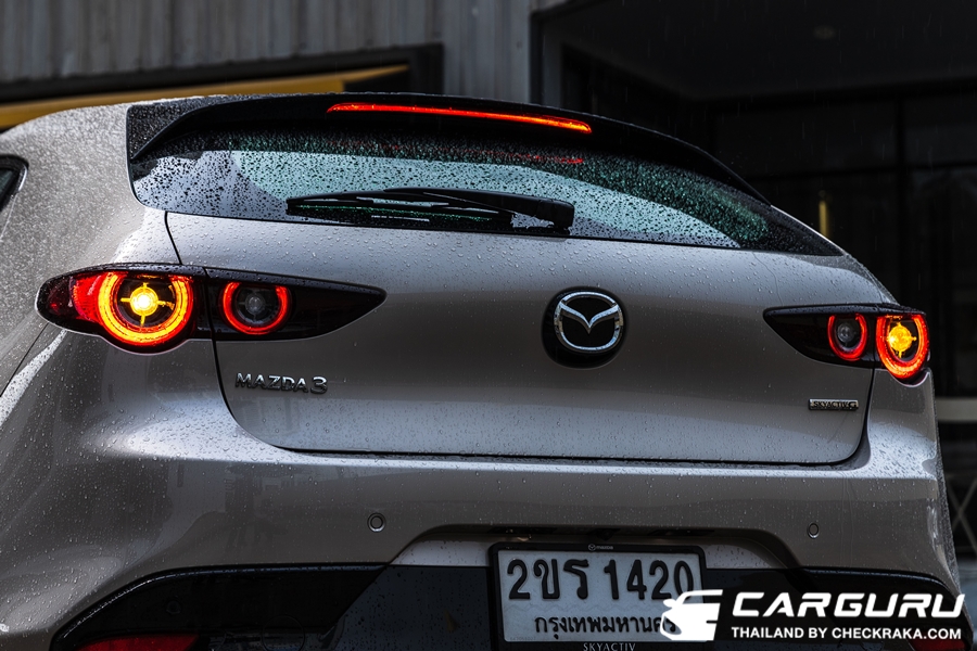 ไฟท้ายโดดเด่นแต่ไกล สว่างชัดเจน โดยเฉพาะไฟเสี้ยว LED Signature มีระบบ "ดิม" ค่อย ๆ ลดความสว่างลง ไม่เหมือนใคร หลังคาซันรูฟไฟฟ้านับเป็น 1 เดียวของรถระดับเดียวในปัจจุบัน ล้ออัลลอยสีรมดำขนาด 18 นิ้ว และดุดันด้วยปลายท่อไอเสียแบบคู่