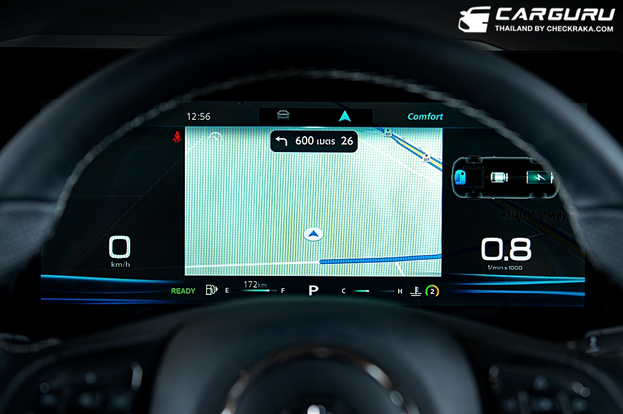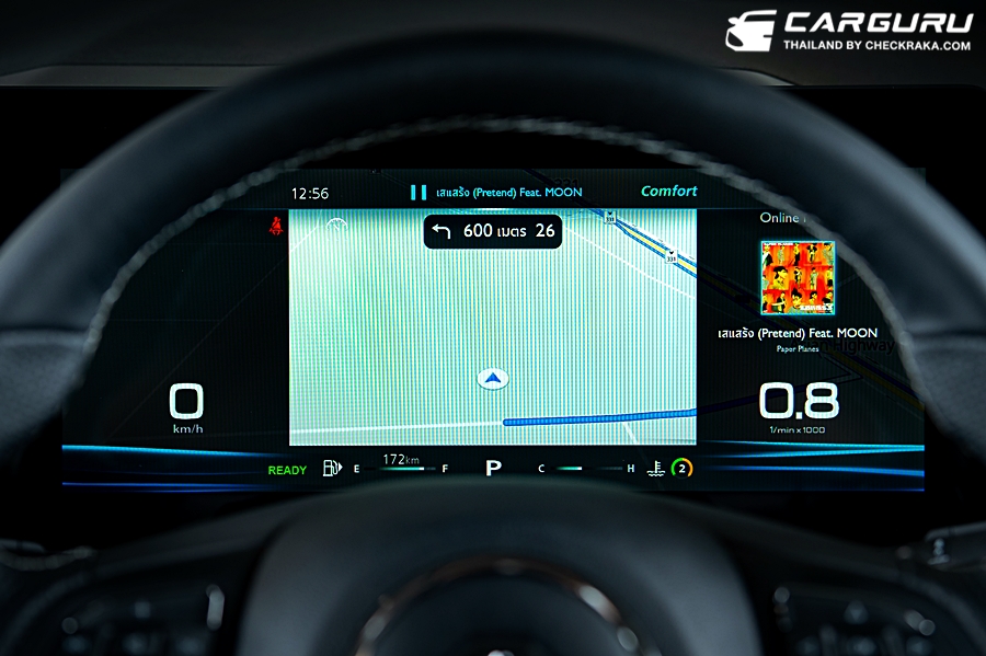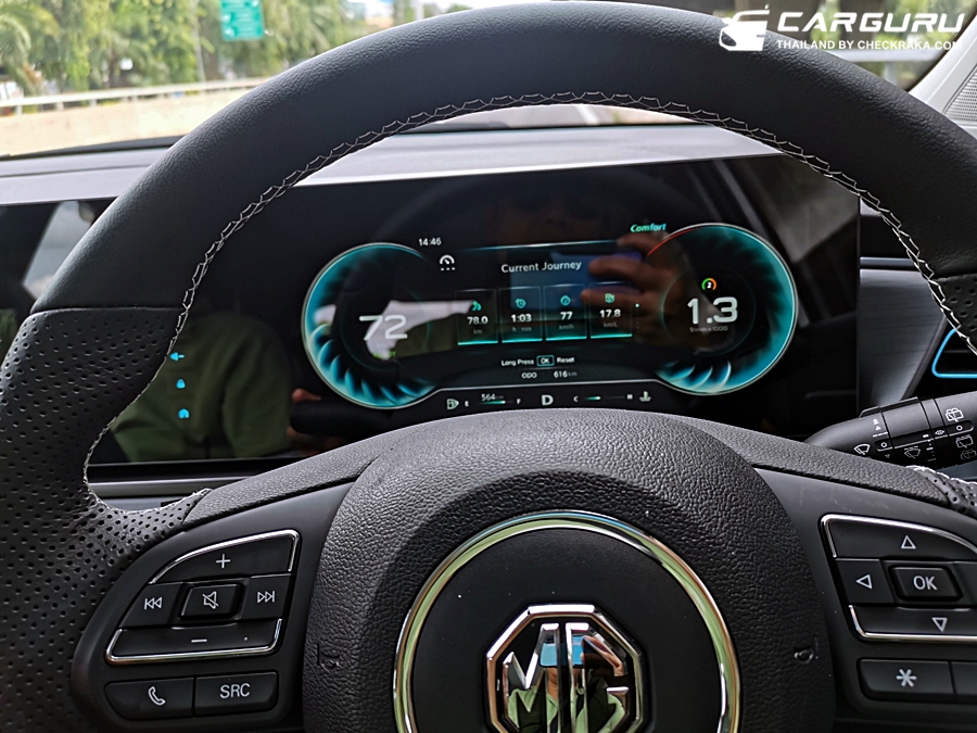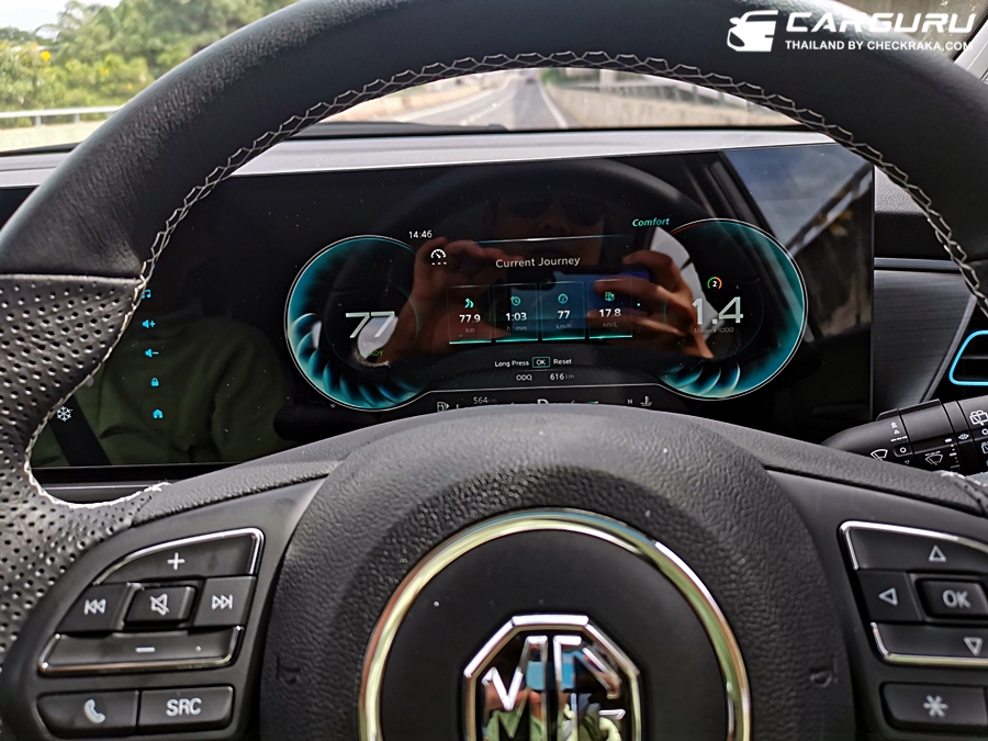 การตอบสนองของเครื่องยนต์และมอเตอร์ไฟฟ้าที่เป็นระบบใหม่นี้ทำได้ดีลงตัวและขับได้สนุกตามที่คุยไว้จริงครับ.....ซึ่งเรื่องความประหยัดตอนแรกคิดว่าไม่น่าจะทำตัวเลขได้ดีนัก ประกอบกับเท้าหนักในวันที่ขับอีกด้วย แต่โดยเมื่อถึงจุดหมายปลายทางแล้วจากการขับกลับมาในสภาพทั่วไป ขับตามกัน เร่งแซง ลองอัตราเร่งแบบสุด ๆ ดูบ้าง ตัวเลขบนมาตรวัดอัตราสิ้นเปลืองเฉลี่ยอยู่ที่ 17.8 กม./ลิตร นับว่าดีกว่าที่คิดเอาไว้พอสมควร จากที่ทางเอ็มจี ถ่อมตัวไว้ว่า 15 - 16 กม./ลิตร แต่เมื่อตัวเลขจริงออกมาระดับนี้ ก็ถือว่าให้ประหยัดมากว่ารถยนต์เครื่องสันดาป 1.5 ลิตร แถมยังให้ความแรงความสนุกในการขับขี่ระดับเครื่อง 2.0 ลิตรเลยทีเดียวครับ หากใครจะไปทดลองเองหรือว่ามีโอกาสได้ซื้อมาจะลองขับแบบ "ปั้นตัวเลข" ดูอาจจะได้มากกว่านี้ก็เป็นได้ครับ
