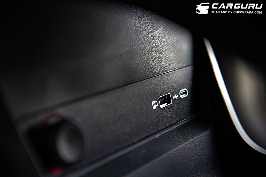 คอนโซลกลางแบบ DOUBLE LAYER ด้านบนตกแต่งด้วยวัสดุ PIANO BLACK พวงมาลัยหุ้มหนังและคันเกียร์ตกแต่งลวดลาย LASER PATTERN ให้ความหรูหรา ด้านล่างมีที่เก็บของพร้อมช่องเชื่อมต่อ USB ที่รองรับทั้ง TYPE C และ TYPE A ถือว่าล้ำสุดในปัจจุบันนี้แล้วครับ แต่ว่า....กระจกมองหลังยังปรับลดแสงด้วยแฮนด์นะครับ