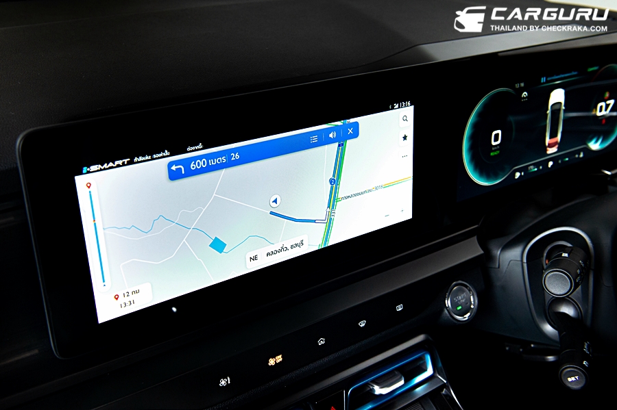 ความพิเศษของจอสัมผัสที่ไม่มีแค่ความใหญ่อย่างเดียวก็คือ การเลงเห็นถึงความสำคัญของคนขับและผู้โดยสารไปพร้อม ๆ กัน เมื่อเชื่อมต่อระบบนำทางหรือว่า "อากู๋" เพื่อดูแผนที่แล้ว หากต้องการใช้งานระบบต่าง ๆ บนหน้าจอกลาง ก็เพียงเอานิ้วจิ้มจอรูปแผนที่ค้างเอาไว้แล้วเลื่อนไปฝั่งจอคนขับแทน หรือกดเลือกการแสดงภาพก็ได้ ระบบแผนที่ก็จะแสดงบนจอฝั่งคนขับ ส่วนจอกลางก็จะแสดงระบบอื่น ๆ ให้ใช้งานได้ เป็นการเอาใจทั้งคนขับและผู้โดยสารอย่างแท้จริงครับ ระบบนี้ยอมรับว่ายอดเยี่ยมมากและกล้าใส่มาในรถราคาไม่ถึงล้านอีกด้วย