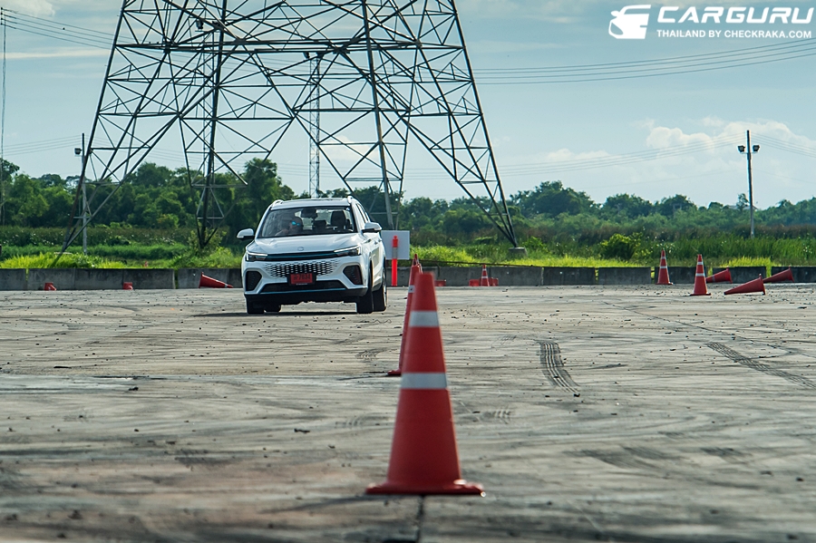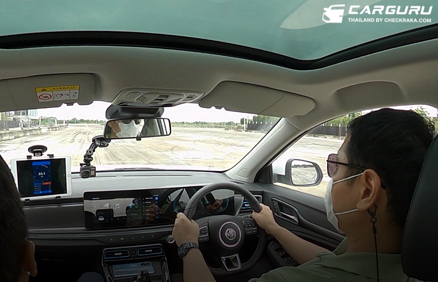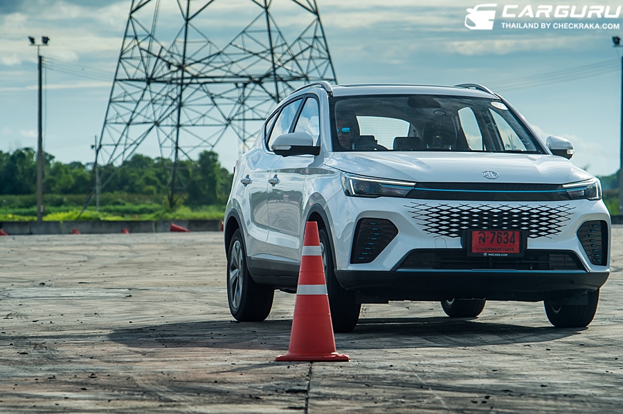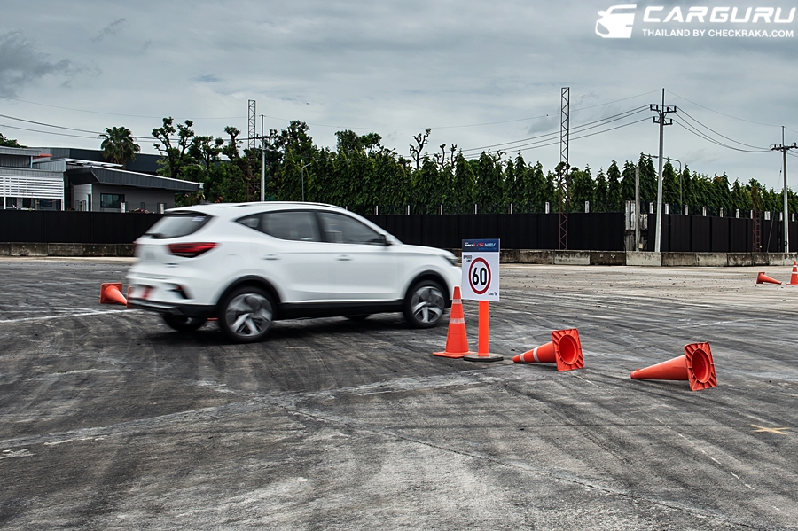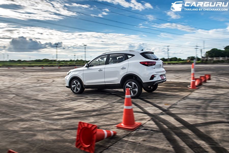 ทางด้านการหักเลี้ยวในรูปแบบสลาลมสลับไปมาซ้ายขวาที่ความเร็วไม่เกิน 60 กม./ชม. ตามผู้จัดกำหนดเอาไว้ ก็สามารถควบคุมรถได้และเลี้ยวเข้าช่องระหว่างกรวยได้สบาย ๆ ไม่มีเสียงยางร้อง และยังมีอาการโคลงตัวไม่มากนัก จากการได้ลองขับสั้น ๆ ในสนามนั้น เอ็มจีทำการบ้านมาได้ตรงกับวัตถุประสงค์ในการใช้งานรถครอบครัวที่ขับง่าย เร่งสนุกติดเท้า ช่วงล่างนุ่มนวลและเงียบ ซึ่งยังต้องลองขับถนนท้องถนนอีกครั้งในช่วงเดินทางกลับครับว่าจะเป็นอย่างไร