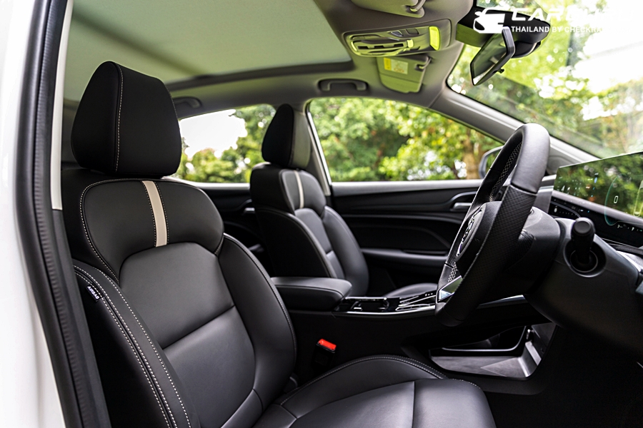 เริ่มด้วยการเป็นผู้โดยสารข้างคนขับ สัมผัสได้ถึงความนุ่มนวลของระบบช่วงล่างที่ไม่กระด่างและแข็งแม้จะผ่านถนนที่ไม่เรียบ และมาพร้อม "ความเงียบ" ของภายในห้องโดยสารที่ดีเกินคาดไว้ ส่วนตัวเบาะนั่งสบายและมีพื้นที่เหลือสำหรับขยับกิริยาบทได้ คอนโซลหน้าและกลางขนาดกำลังดีไม่ทำให้การนั่งแล้วแน่นตัวจนเกินไป และเมื่อเปิดหลังคาพาโนรามิครูฟ ก็ยิ่งรู้สึกโปร่งโล่งสบายขึ้นอีก แต่คาดว่าน่าจะเปิดได้ไม่บ่อยเพราะจะโดนแดดเผาเกรียมซะก่อน