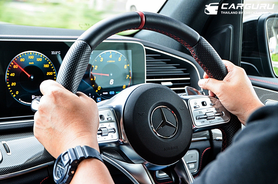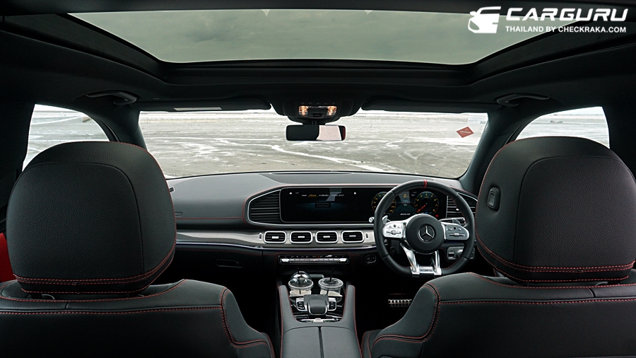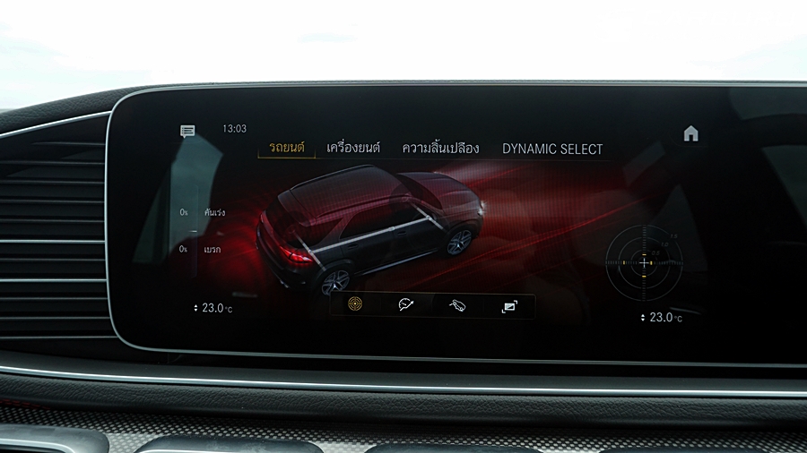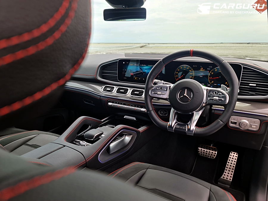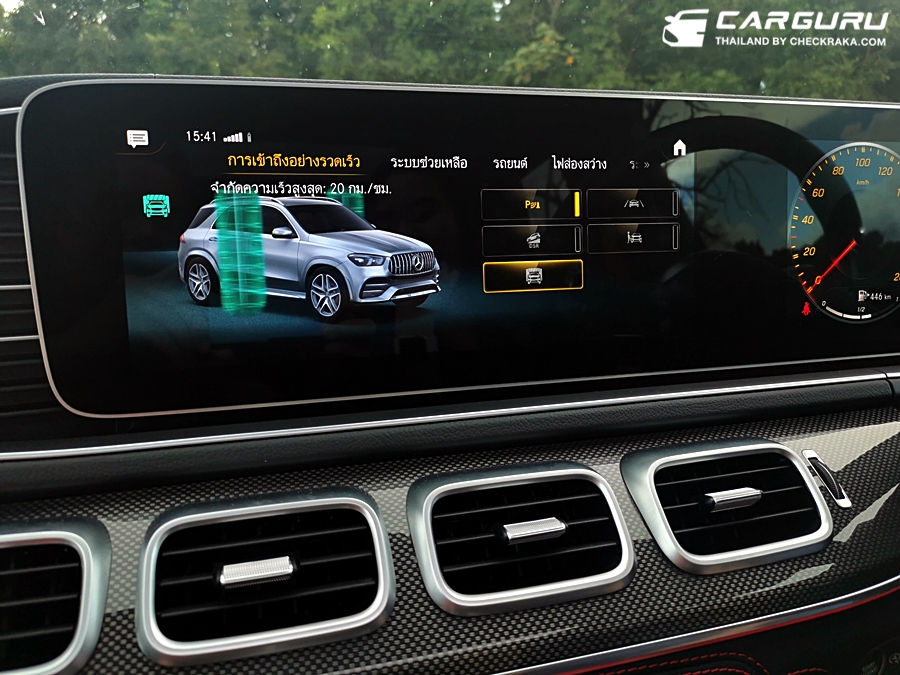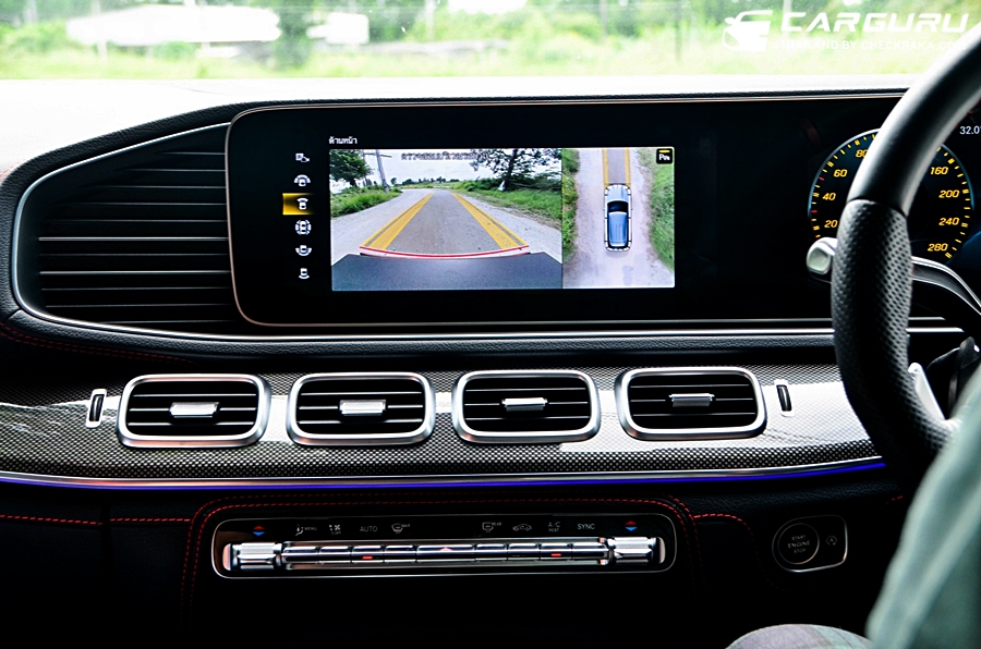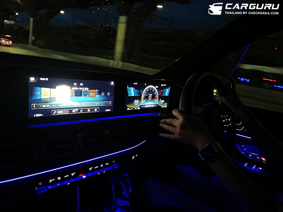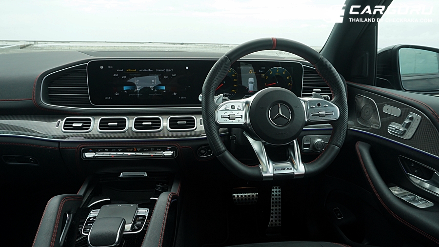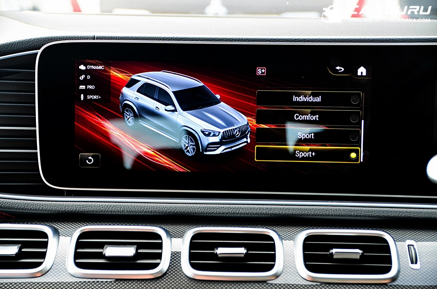 นอกจากนั้นก็จะเป็นออปชั่นจัดเต็มที่มีให้อย่างเช่น ระบบเครื่องเสียงจาก Burmester ไฟสร้างบรรยากาศปรับได้ 64 สี ปรับรูปแบบการขับขี่ DYNAMIC SELECT ได้ถึง 5 รูปแบบ แค่เพียงกดปุ่ม ระบบช่วงล่างและเครื่องยนต์ก็จะถูกปรับให้เข้ากับสภาพถนนนั้น ๆ หรือจะตั้งค่าความชอบส่วนบุคคลไว้เลือกใช้งานเองก็ได้ สามารถเลือกได้หลากหลายรูปแบบคือ Comfort, Sport หรือ Sport+ หรือตั้งค่าช่วงล่างตามการใช้งานทั้ง "Trail" หรือ "Sand" และยังสามารถเลือกโหมดการขับขี่และเข้าไปตั้งระบบช่วงล่างในโหมดนั้นเองก็ได้เช่นกันครับ ซึ่งตลอดที่ใช้งานชอบโหมด S+ มากที่สุดเพราะเสียงดุดันราวกับเครื่องวี 8 เลยทีเดียวเชียวซึ่งเป็นผลจากการออกแบบของ AMG นี่เอง