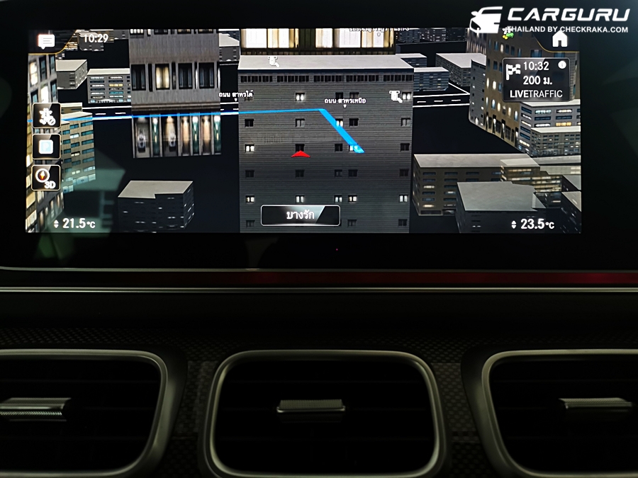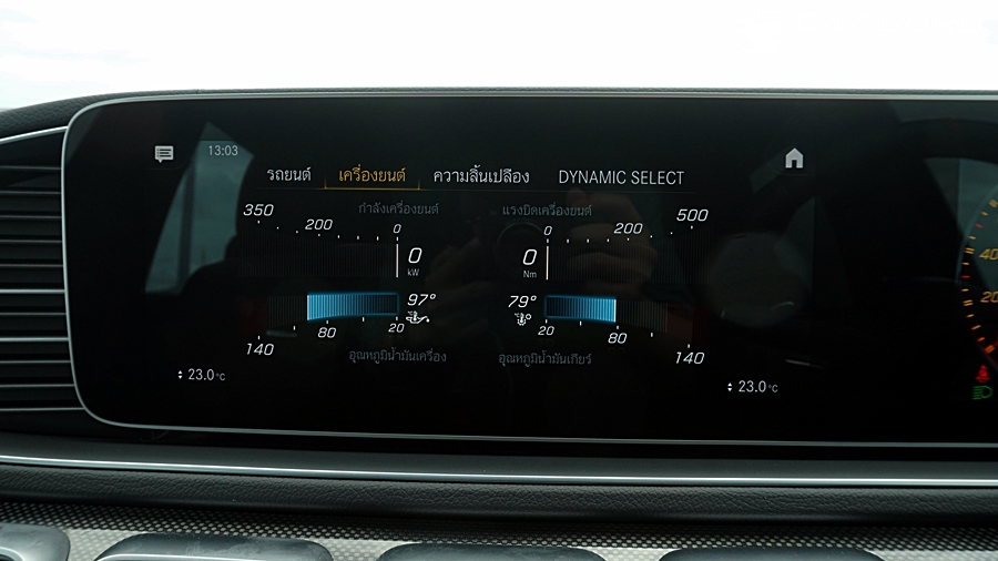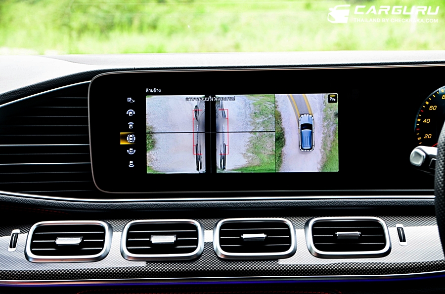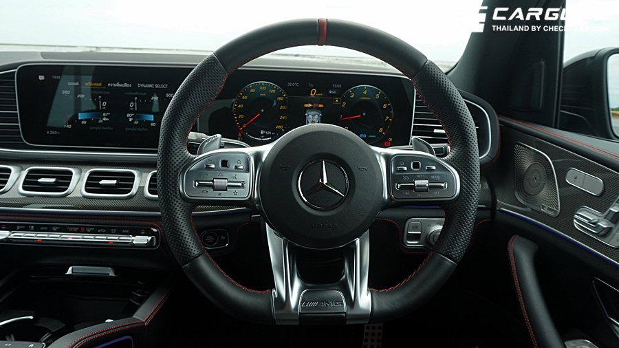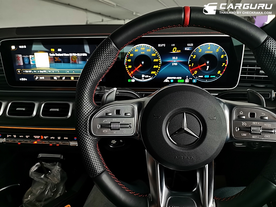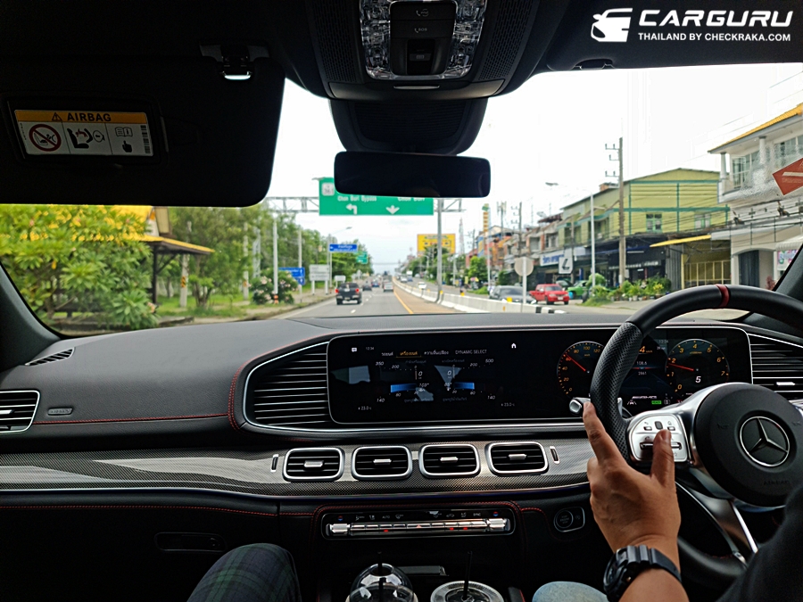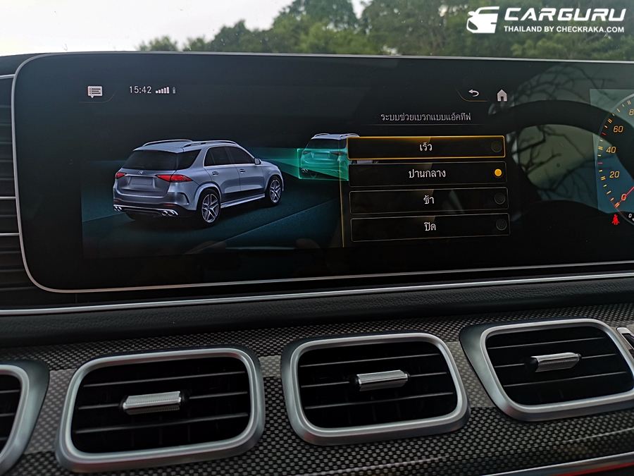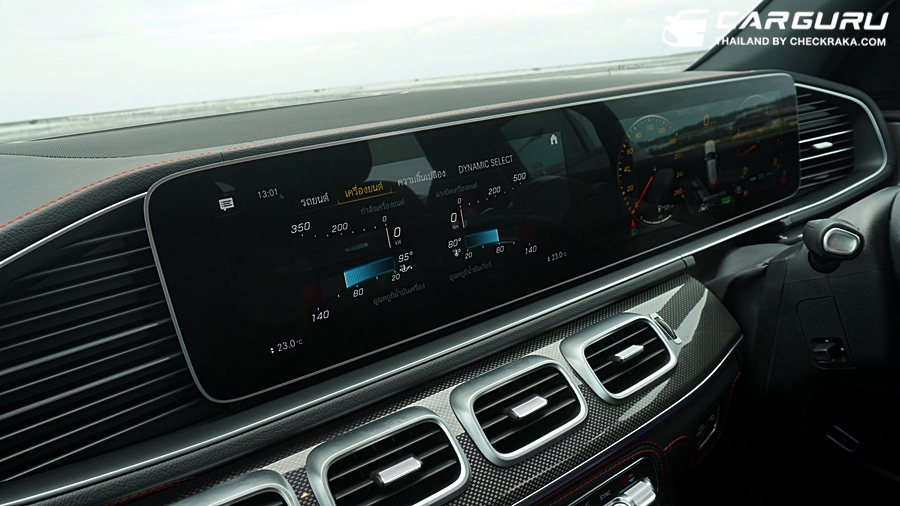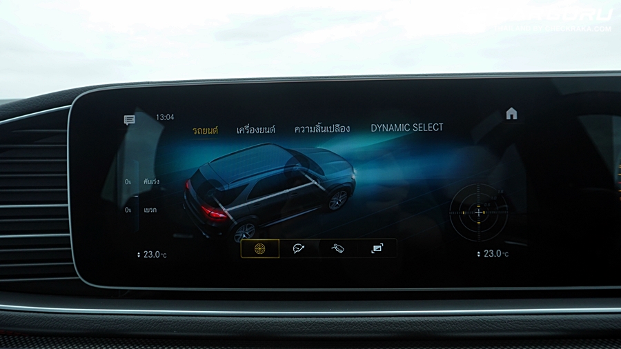 นอกจากนั้นก็จะเป็นออปชั่นจัดเต็มที่มีให้อย่างเช่น ระบบเครื่องเสียงจาก Burmester ไฟสร้างบรรยากาศปรับได้ 64 สี ปรับรูปแบบการขับขี่ DYNAMIC SELECT ได้ถึง 5 รูปแบบ แค่เพียงกดปุ่ม ระบบช่วงล่างและเครื่องยนต์ก็จะถูกปรับให้เข้ากับสภาพถนนนั้น ๆ หรือจะตั้งค่าความชอบส่วนบุคคลไว้เลือกใช้งานเองก็ได้ สามารถเลือกได้หลากหลายรูปแบบคือ Comfort, Sport หรือ Sport+ หรือตั้งค่าช่วงล่างตามการใช้งานทั้ง "Trail" หรือ "Sand" และยังสามารถเลือกโหมดการขับขี่และเข้าไปตั้งระบบช่วงล่างในโหมดนั้นเองก็ได้เช่นกันครับ ซึ่งตลอดที่ใช้งานชอบโหมด S+ มากที่สุดเพราะเสียงดุดันราวกับเครื่องวี 8 เลยทีเดียวเชียวซึ่งเป็นผลจากการออกแบบของ AMG นี่เอง