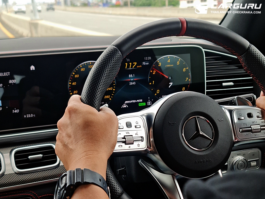 สำหรับการเกาะถนนในรถสูงโย่งที่มากับช่วงล่าง AMG และระบบ AMG Performance 4MATIC+ ขับเคลื่อน 4 ล้อ และยิ่งในโหมด SPORT หรือ Sport+ เกาะราวกับรถโหมดเตี้ย และพวงมาลัยที่ควบคุมได้กระชับมั่นใจมาก เหมือนไม่ได้ขับรถยกสูงด้วยซ้ำไปครับ ส่วนระบบเบรกก็มั่นใจได้เพราะใช้คาร์ลิเปอร์แบบ 4 ลูกสูบจาก AMG ทั้ง 4 ล้อ และจานเบรกโตพร้อมครีบระบายความร้อน จากความเร็วสูง ๆ หรือเร่งความเร็วและต้องรีบเบรกอย่างกระทันหัน แตะเพียบแผ่วเบาะ ก็หยุดได้สนิทง่าย ๆ สบายเลยครับ