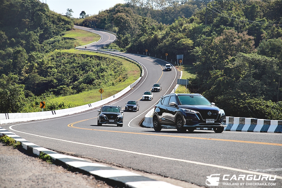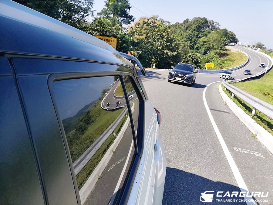 นอกจากนี้การขับในรูปแบบขบวนนั้น จะต้องตามกลุ่มให้ทันเว้นระยะห่างไม่มากนักเพื่อให้เห็นรถคันหน้า ซึ่งบางจังหวะติดรถบรรทุกหรือรถที่ขับช้ากว่าจะต้องหาโอกาศแซง ทำให้ต้องใช้อัตราเร่งและความเร็วอยู่บ้างแบบโค้งต่อโค้ง ใช้คันเร่งเยอะกว่าปกติแต่ KICKS ที่มีแรงบิดระดับ 280 นิวตันเมตร ก็ขับขึ้นได้อย่างสบายไม่เหนื่อยและไม่ต้องเค้นมาก มีเพียงเสียงเครื่องยนต์ติดเพื่อปั่นไฟที่อาจจะรบกวนเข้ามีในห้องโดยสารอยู่บ้างครับ แต่สมรรถนะในการขับขี่ไม่แผ่วเลย