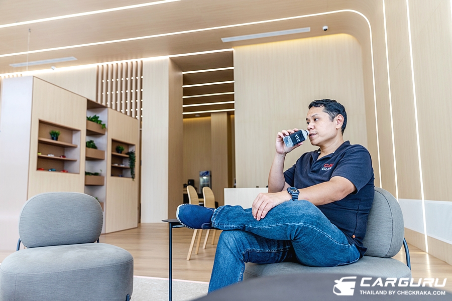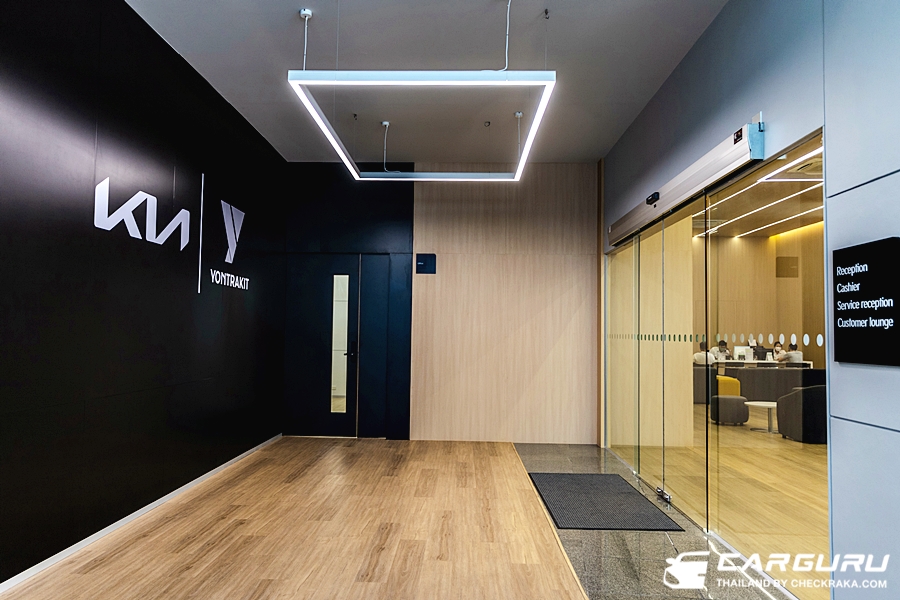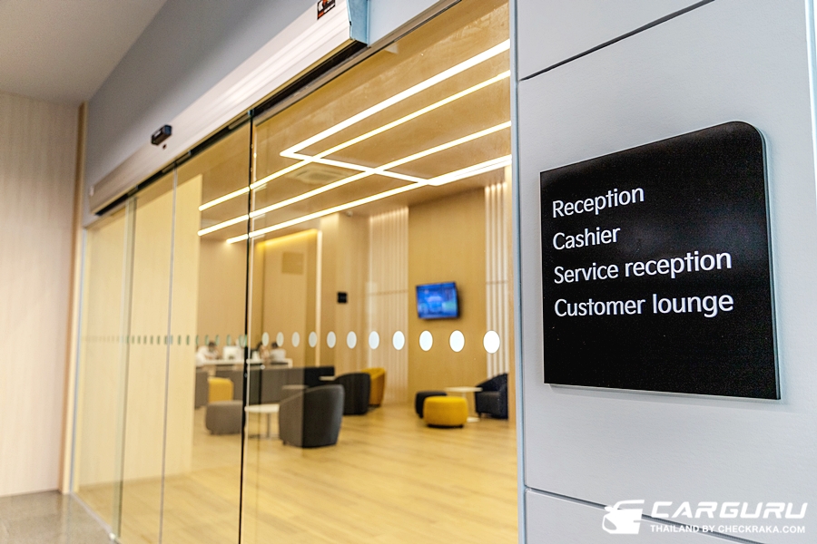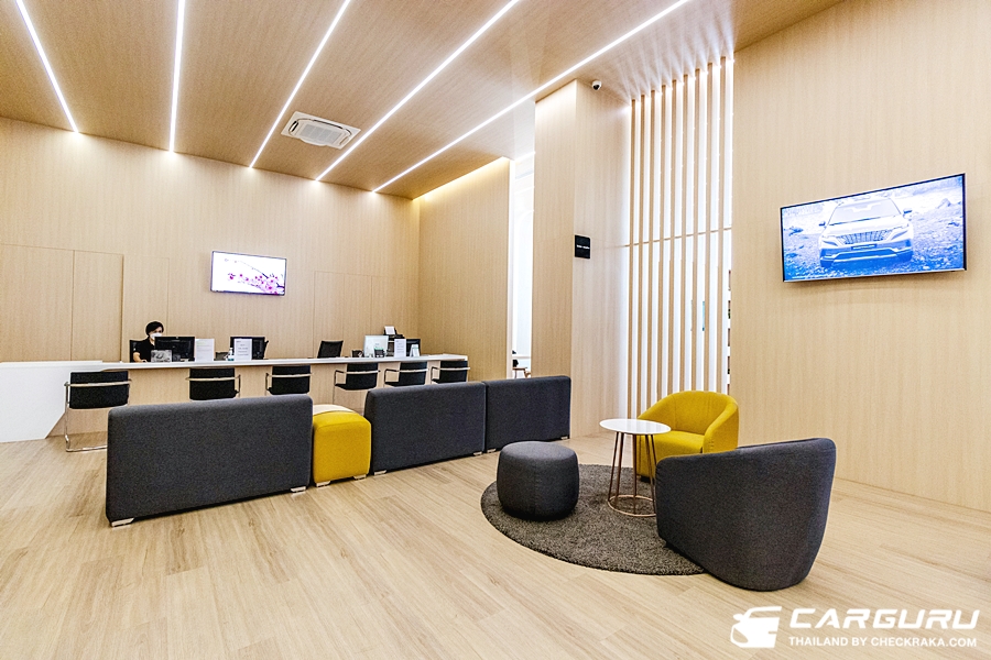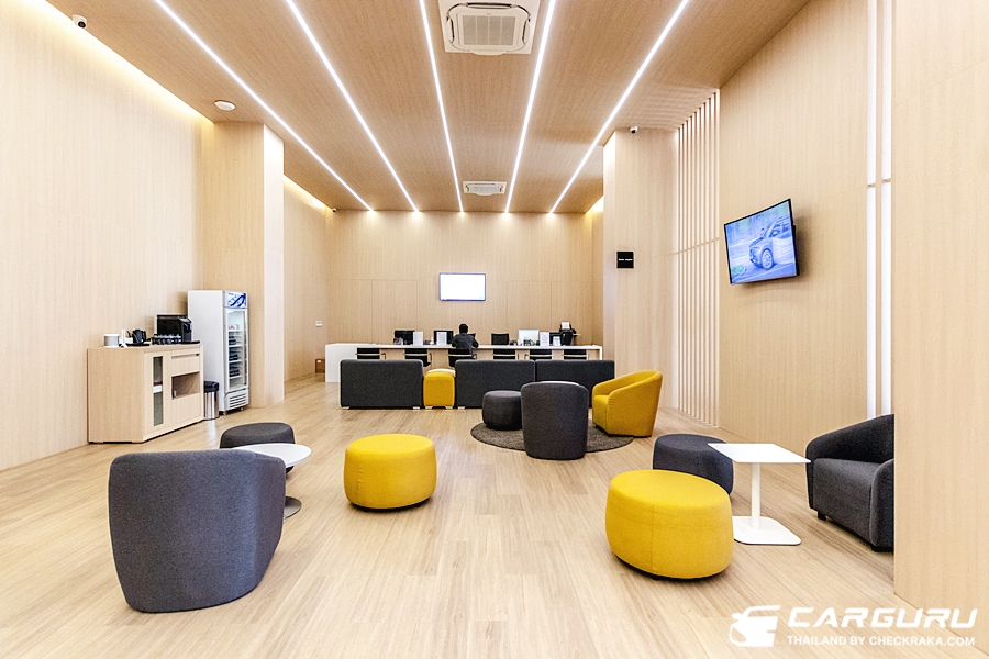 ด้วยการตกแต่งแยกส่วนการจัดแสดงรถยนต์ใหม่และจุดบริการลูกค้าออกอย่างชัดเจนด้วยการใช้เส้นไฟสีแดงให้มีความแตกต่างกัน พร้อมกับดีไซน์เคาเตอร์ พาทิชั่น และจุดบริการต่าง ๆ ให้เป็นไปในรูปแบบเดียวกับโชว์รูมเกียทั่วโลก