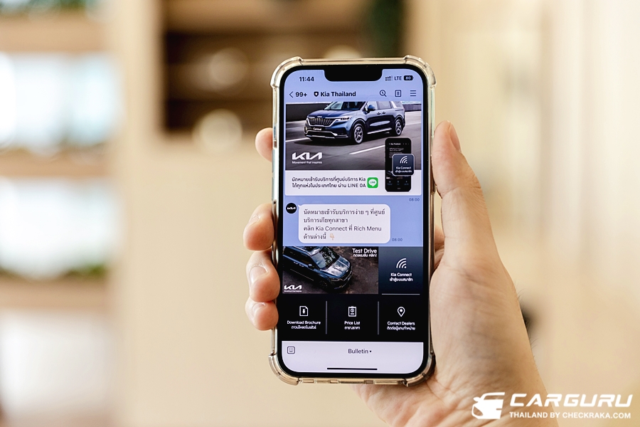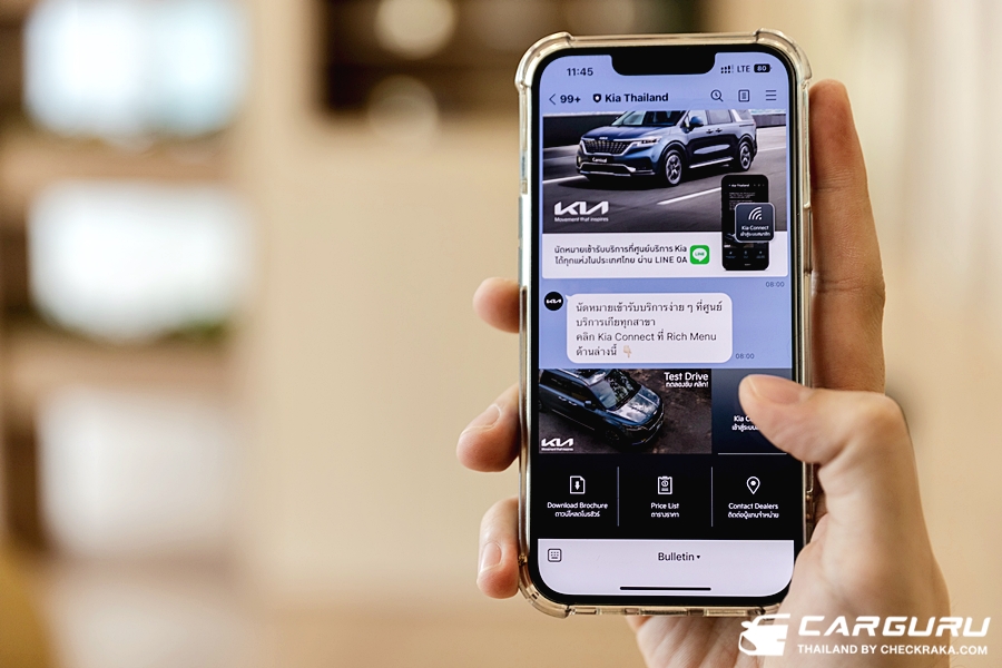 ค้นหา Kia Thailand Line Official Account ใน Line Application หรือ Line ID : @Kia.Thailand ในขั้นตอนนี้แนะนำให้ทำในวันรับรถทันที เข้าไปที่หน้าแรกและกดที่ "Kia Connect" บน Rich Menu ของ Kia Thailand