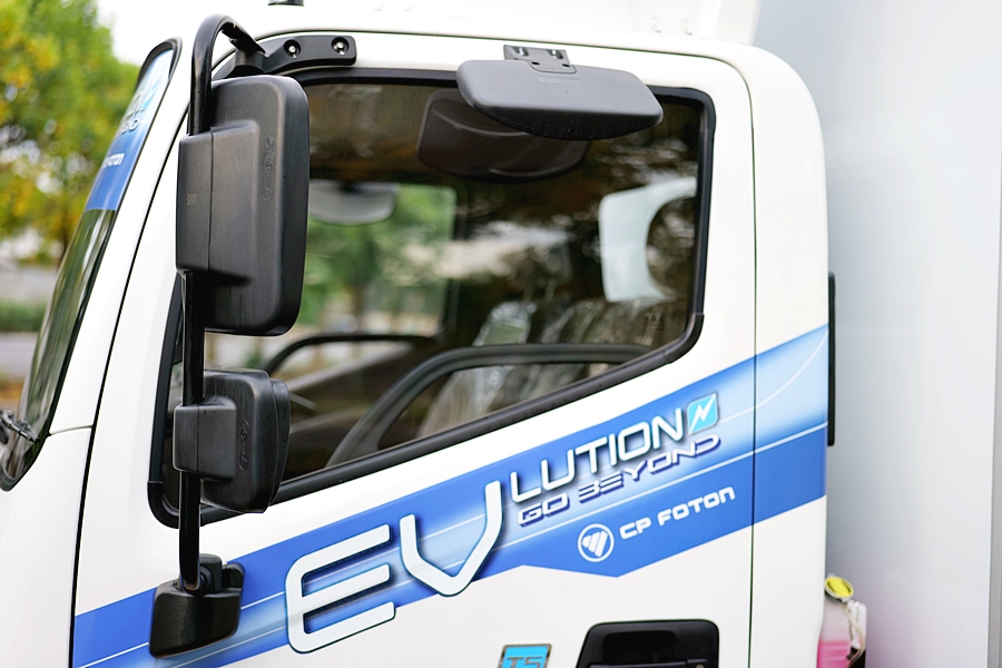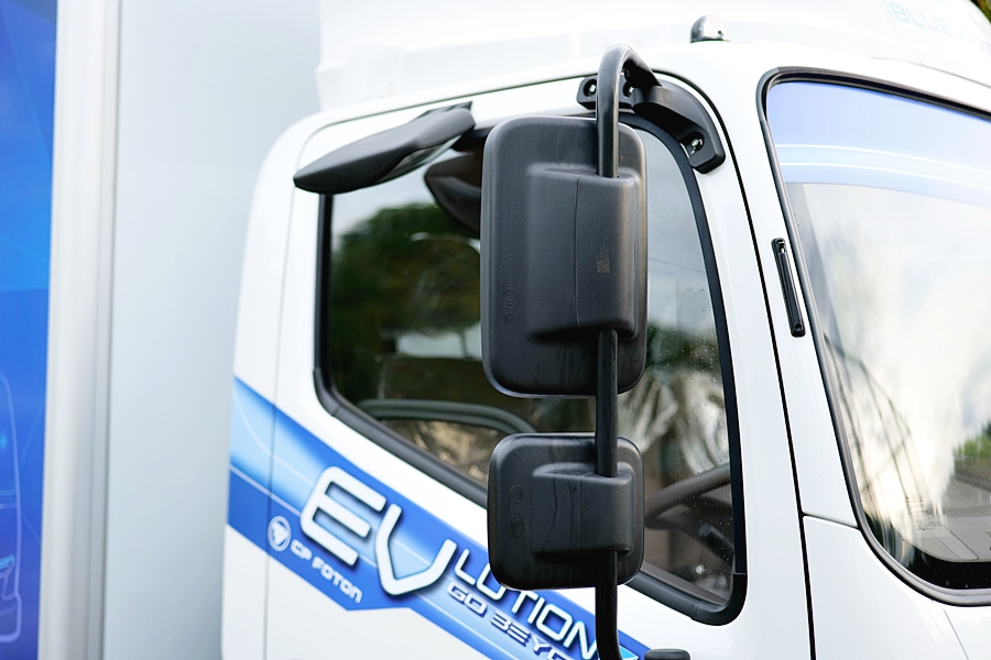 จุดเด่นนอกจากพลังงานไฟฟ้าแล้ว CP FOTON iBlue 85 ยังได้ความสวยลงตัวใช้งานสะดวกสบาย  ดีไซน์ภายนอกเรียบหรู ทันสมัย ให้ทัศนวิสัยการขับขี่ที่ดีด้วยกระจกบานหน้าบานใหญ่ พร้อมชุดกระจกมองข้างซ้ายขวา 2 บาน ให้มิติมุมมองที่แตกต่าง แต่ช่วยลดมุมอับได้ดี เหนือกว่าด้วยกระจกข้างประตูด้านซ้าย ช่วยลดมุมอับด้านข้างตัวรถช่วยให้การขับขี่ปลอดภัยมากขึ้น