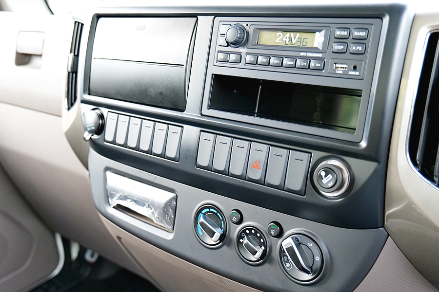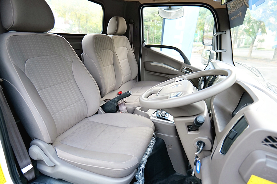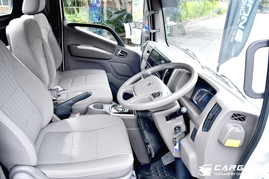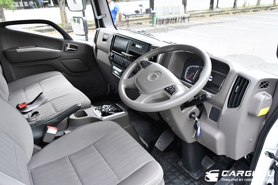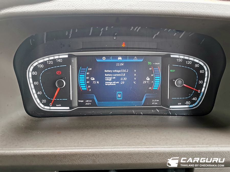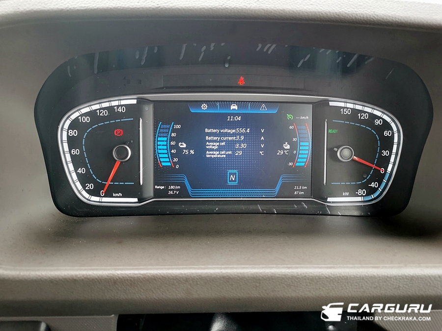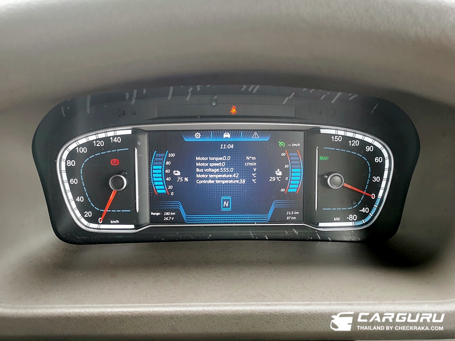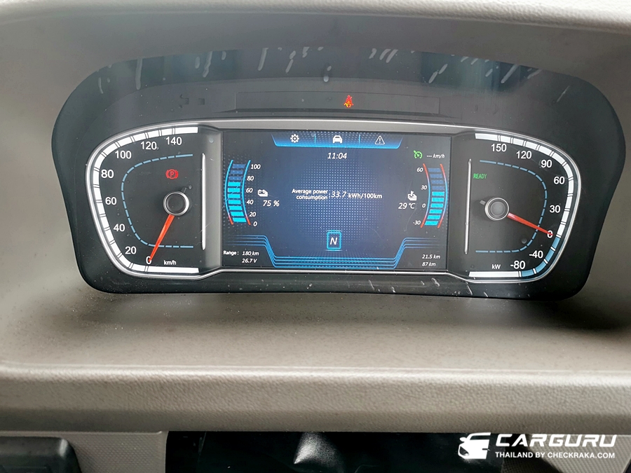 ส่วนภายในนั้นก็สไตล์รถบรรทุกไม่ได้สวยหวืดหวาเน้นใช้งานทนทานและมีอุปกรณ์ที่ครบครัน แต่มาตรวัดนั้นกลับดูทันสมัยและล้ำหน้ามาก ๆ เพราะจอสีขนาดใหญ่ตรงกลางที่แสดงข้อมูลเชิงลึกได้ค่อนข้างละเอียด ทั้งบอกสถานแบตฯ ความจุ กำลังไฟขณะใช้งาน เป็นต้น นอกจากนี้ก็ยังเข็มวัดความเร็วและวัดกำลังมอเตอร์ไฟฟ้าพร้อมบอกระดับการ "รีเจนฯ" แบตฯ กลับอีกด้วย