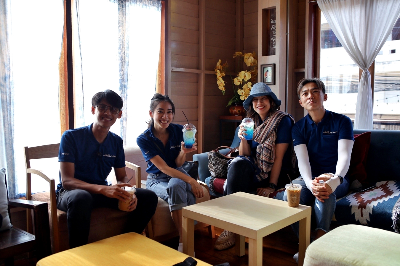 เมื่อพร้อมออกเดินทางหมุดหมายแรกที่ต้องไปคือ ร้านกาแฟ เลอกองเก่า Cafe' de PhraeRis ร้านกาแฟมีสไตล์เมืองแพร่ ตัวร้านเป็นบ้านไม้ 2 ชั้น ที่มีสไตล์การแต่งร้านเป็นเอกลักษณ์ของเมืองไม้ อย่างเมืองแพร่ บรรยากาศอบอุ่น หอมกรุ่นไปด้วยกลิ่นอบครัวซองต์ชิ้นโต และเมนูเครื่องดื่มแนะนำคือ “เอสเย็น เลอแพร่รีส” ซึ่งได้รับรางวัลชนะเลิศ แพร่เอสเย็น Battle 2019 โดย ททท.สำนักงานแพร่ และ หอการค้าจังหวัดแพร่ การันตีความอร่อย ช่วงเวลาที่ขับมาใช้เวลาไม่นาน ผู้เขียนมีความคุ้นชินกับมิว-เอ็กซ์มาก่อนจากที่เคยขับทดสอบหลายรุ่นย่อย แต่ความรู้สึกที่ไม่เหมือนเดิมคือ รถดูสวยแปลกตาขึ้นกับการปรับเปลี่ยนในหลายๆ จุด เช่น กระจังหน้า Black Chrome พร้อมด้วยชุดแต่งรอบคันเฉดสี Magnetite Gray รอบคัน ดุดันลงตัว, ไฟท้าย LED สไตล์ Winglet Signature เล่นระดับแบบ 3 มิติ อารมณ์สปอร์ตโทนเทาดำ, ล้ออัลลอย Dynamic Rotor Blade สี Magnetite Gray ปัดเงา ขนาด 20 นิ้ว และภายในโทนสี Macchiato Brown อารมณ์นุ่มลึกสีน้ำตาลเทาสลับสีน้ำตาลเข้ม เพิ่ม  อารมณ์หรูด้วยวัสดุ Piano Black และ Chrome และเบาะนั่งโอบกระชับรับสรีระยิ่งขึ้น พร้อมด้วยเทคโนโลยี COOLMAX ช่วยลดการสะสมความร้อนซึ่งดีมากสำหรับเมืองไทยเวลาที่จอดตากแดดแล้วกลับเข้ามาในรถการทำความเย็นจากเครื่องปรับอากาศก็เร็วขึ้นตามไปด้วย