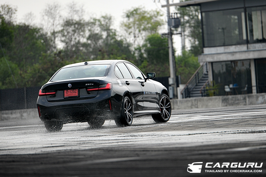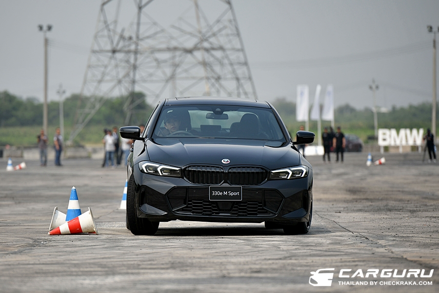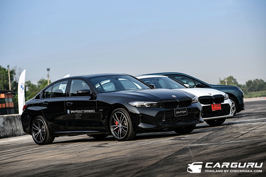บีเอ็มดับเบิลยู ประเทศไทย นำสื่อมวลชนสัมผัสที่สุดแห่งสมรรถนะขุมพลังปลั๊กอินไฮบริดและระบบขับเคลื่อนด้วยไฟฟ้าในรถยนต์บีเอ็มดับเบิลยู 330e M Sport และ iX xDrive40 Sport ณ สนามปทุมธานีสปีดเวย์ เพื่อทดสอบประสิทธิภาพการควบคุมของตัวรถและการเข้าโค้ง (Handling) ฝึกการใช้งานระบบควบคุมเสถียรภาพการขับขี่ (DSC) ควบคู่ระบบขับเคลื่อนสี่ล้อ xDrive ทดสอบประสิทธิภาพการขับขี่ในด่านต่าง ๆ เช่น White Surface Circular Skid Pad, Double Lane Change และทดสอบสมรรถนะรถยนต์ด้วยเทคนิคการขับแบบสลาลม (Slalom) ทั้งนี้ ยังเปิดโอกาสให้สื่อมวลชนได้นำรถยนต์ออกไปทดสอบสมรรถนะในเส้นทางขับขี่จริงเพื่อให้ได้สัมผัสกับความคล่องตัวในการใช้งานจริงและระบบช่วยเหลือผู้ขับขี่ต่าง ๆ (Driving assistant) ที่ติดตั้งมาในตัวรถด้วย