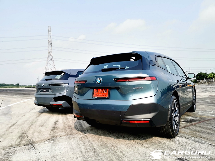 สำหรับอีกรุ่น iX xDrive40 Sport รถยนต์ไฟฟ้า 100% คันใหญ่ยักษ์แต่ให้ความคล่องตัวและสมรรถนะในการหลบหลีกสิ่งกีดขวางได้ดีและปลอดภัยไม่แพ้รถคันเล็กหรือรถเก๋ง แต่ระดับความแรงนั้นในสนามแห่งนี้ ยังมีที่วิ่งไม่พอ เพราะสามารถทำอัตราเร่งได้รวดเร็วมาก แต่เมื่อเบรกหรือเข้าทางโค้ง แม้มีอาการโยนตัวตามสไตล์รถตัวถังสูง SUV แบบนี้ แต่ความเกาะจากระบบ มอเตอร์ไฟฟ้าขับเคลื่อน 4 ล้อ สามารถควบคุมทิศทางได้ดี และในช่วงทดสอบหักหลบสิ่งกีดขวางใช้ความ 80 กม./ชม. พร้อมกระทืบเบรก รถสามารถจะจอดสนิทได้โดยไม่เสียอาการควบคุมแต่อย่างใด นับว่าปลอดภัยขั้นสุดจริง ๆ ครับ