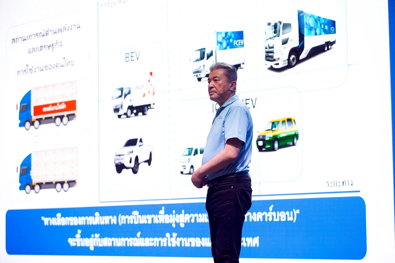 ก่อนไปถึงช่วงของการขับจริง ขอแนะนำ Commercial Japan Partnership Technologies Corporation หรือ CJPTก่อตั้งในเดือนเมษายน 2564 มีวัตถุประสงค์เพื่อเร่งการใช้เทคโนโลยีภายใต้แนวคิด CASE (Connected, Autonomous, Shared, Electric) อย่างแพร่หลายในวงกว้าง เพื่อมุ่งลดปัญหาที่พบในระบบขนส่ง ตลอดจนบรรลุสังคมที่มีความเป็นกลางทางคาร์บอน โดยหลังจากที่ได้มีการประกาศความร่วมมือกับเครือเจริญโภคภัณฑ์ (ซีพี) เมื่อเดือนธันวาคมปีที่ผ่านมา CJPT กำหนดเป้าหมายในการมุ่งขยายพันธมิตรภายในภูมิภาคเอเชีย ซึ่งรวมไปถึงการจัดการด้านพลังงาน (Energy Solution) ทางเลือกด้านการขับเคลื่อน (Mobility Solution) เช่น การจัดสรรยานพาหนะตามเป้าหมายการใช้งานอย่างเหมาะสม และการเพิ่มประสิทธิภาพของระบบโลจิสติกส์ รวมไปถึงการบริการจัดการด้านข้อมูล (Data Solution) โดยผสานจุดแข็งของแต่ละบริษัทเข้าไว้ด้วยกัน บนเส้นทางเพื่อบรรลุความเป็นกลางทางคาร์บอน ลูกค้าอาจมองหารถที่มีระบบส่งกำลังแตกต่างกันไป โดยขึ้นอยู่กับแหล่งพลังงานและการใช้งานของลูกค้าในแต่ละประเทศหรือภูมิภาค โดยมีตัวเลือกต่างๆ ที่หลากหลาย เช่น รถยนต์ไฟฟ้าไฮบริด รถยนต์ไฟฟ้าแบตเตอรี่ และรถยนต์ไฟฟ้าเซลล์เชื้อเพลิง เป็นต้น ดังนั้นจึงเป็นสิ่งที่สำคัญในการนำเสนอทางเลือกด้านการขับเคลื่อนที่เหมาะสมที่สุด โดยคำนึงถึงสภาพแวดล้อมในภูมิภาคและความสามารถในการตอบสนองความต้องการของลูกค้า ทั้งนี้ โครงการ CJPT มุ่งหวังให้งานทดลองสมรรถนะรถยนต์ในครั้งนี้เป็นส่วนหนึ่งของการขยายความร่วมมือกับพันธมิตรให้มากยิ่งขึ้น พร้อมช่วยเสริมความแข็งแกร่งในการเร่งบรรลุเป้าหมายของโครงการ CJPT ด้านความเป็นกลางทางคาร์บอนในประเทศไทย