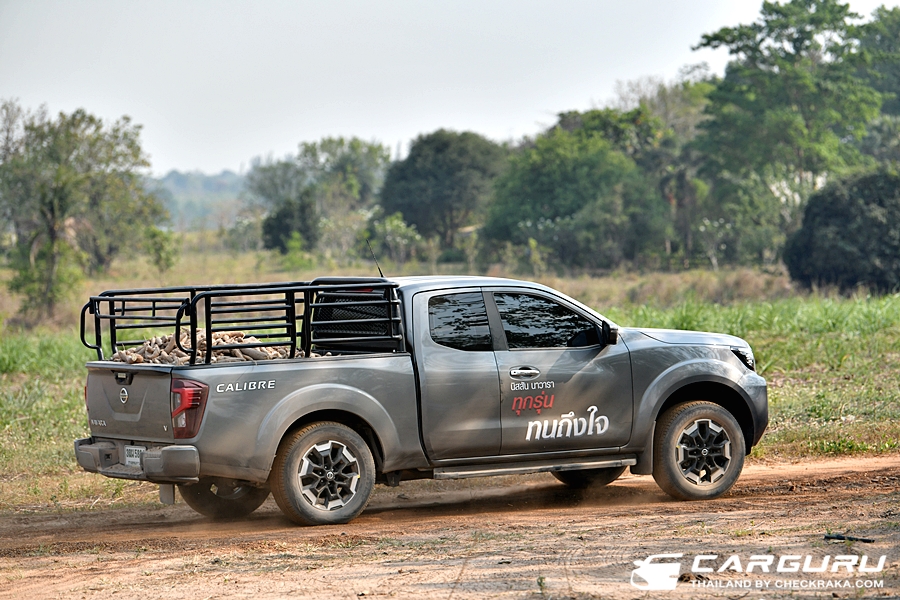 เมื่อขับเข้าถนนกึ่งออฟโร้ดหรือในไร้ที่เป็นทางฝุ่นมีเนินสลับหลุมบ่อ ช่วงล่างยังไม่กระเด้งมากจนจุก และสามารถควบคุมพวงมาลัยได้ดี หลังจากได้บรรทุกมันฯ ที่น้ำหนักประมาณ 1 ตัน ( 1,000 กก.) เมื่อขับผ่านเส้นทางเดินก็กลับมีอาการเด้ง ยวบหรือโยนไม่มากนัก เรียกขนแค่นี้ช่วงล่างเดิม ๆ เอาอยู่ สบาย ๆ ไม่ต้องไปตัดแต่ง ต่อเติมเสริมแต่อย่างใดครับ ส่วนเรื่องของพละกำลังไม่ต้องห่วงเพราะ แรงบิดระดับ 450 นิวตันเมตร เติมคันเร่งเมื่อไหร่ ก็พุ่งได้ตามสั่งครับ แต่ยังได้ได้ยินเสียงเครื่องยนต์เข้าให้ห่องโดยสารแต่ไม่มากนัก ดังแค่พอได้อารมณ์สนุก ๆ มัน ๆ จากการขับขี่
