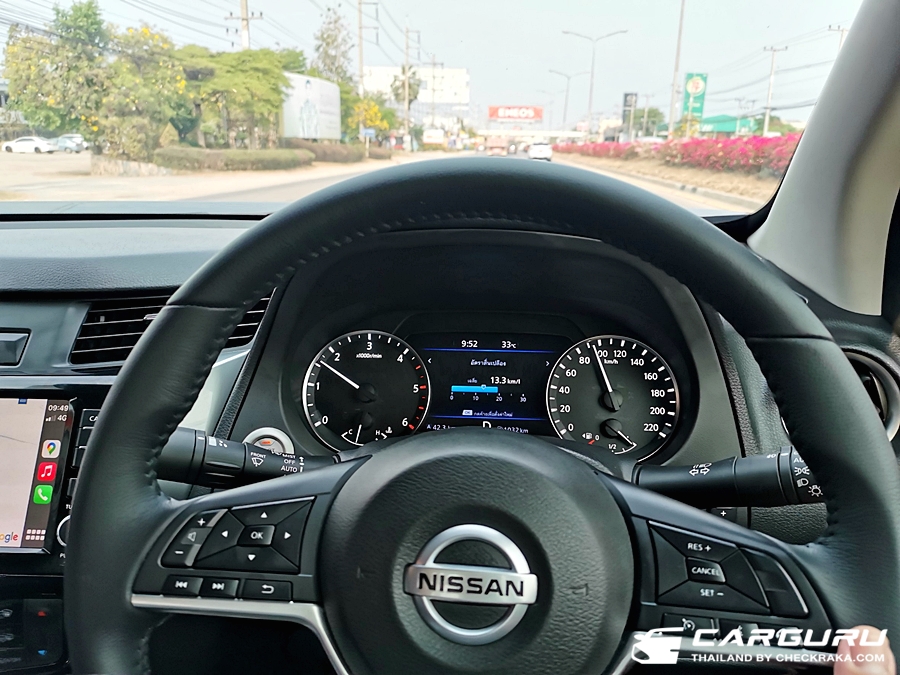 การทรงบนถนนดำหรือทางเรียบก็ยังคงควบคุมง่าย ไม่มีอาการเหวี่ยง โยนมากนัก และโช้คก็ไม่ยุกมากจนสุดแม้จะผ่านคอสะพาน รวมถึงอัตราเร่งและระบบเบรกยังคงทำงานได้ดี การควบคุมพวงมาลัยยังไม่ลำบากอะไร ถือว่าขับได้แบบชิว ๆ เหมือนไม่ได้บรรทุกอะไรมากนัก และอัตราสิ้นเปลืองบนมาตรวัดรวม ๆ ตลอดทริปคันนี้ราว ๆ 12 - 13 กม./ลิตร