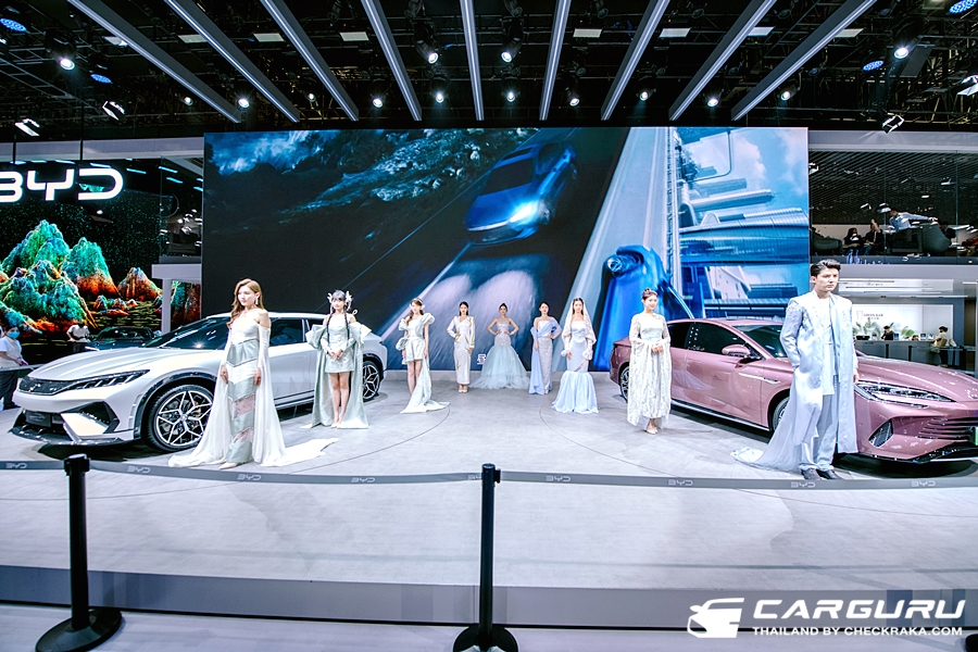 BYD เป็นรถยนต์ได้รับการสนับสนุกจากรัฐบาลจีน จึงตั้งชื่อรถเป็นไปตามราชวงค์จีน เช่น ฉิน, ซ่ง, ฮั่น และถัง เป็นต้น ภายในบูธ BYD ก้จะมีรถยนต์หลายรุ่น แต่ก็ยังมีรถที่ใช้ขื่อตามสัตว์น้ำเช่น Dolphin หรือ รุ่นใหม่น้องเล็กสุด Seagull
