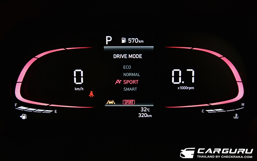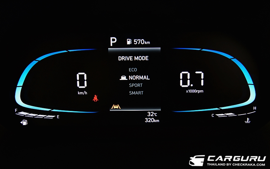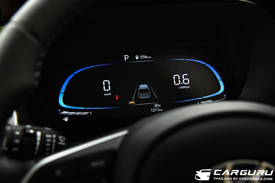 คอนโซลหน้าออกแบบได้ไม่ซ้ำใครจริง ดูล้ำอนาคนเบา ๆ เริ่มด้วยมาตรวัดแบบดิจิทัล 4.2 นิ้ว แสดงรายละเอียดฟังก์ชั่นทั้งหมดของรถยนต์ได้ชัดเจน ไม่สะท้อนตา และยังดูทันสมัยกว่าคู่แข่งพอสมควร และสามารถเปลี่ยนรูปแบบหน้าจอได้ตามโหมดการขับขี่ที่เลือกใช้อีกด้วย พร้อมกับที่วางเก้บสิ่งของ ช่องวางขวดหรือแก้วน้ำ รวมถึงจุดจ่ายไฟต่าง ๆ เต้มทั้งคัน