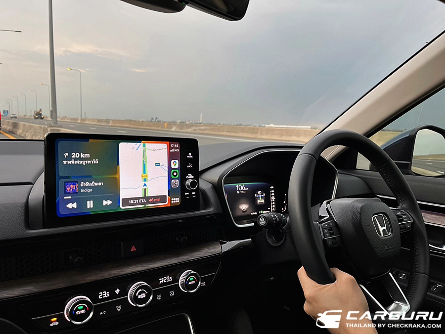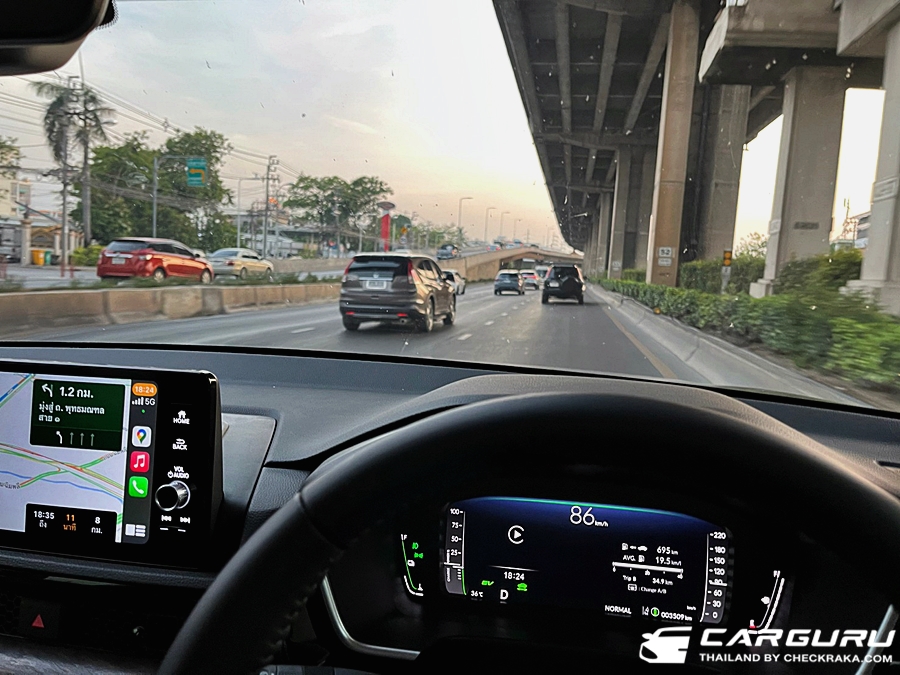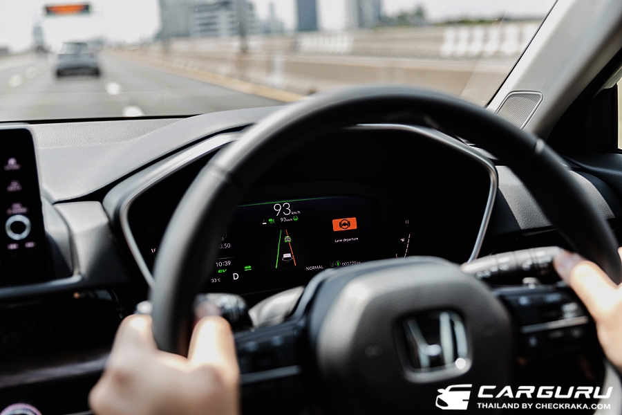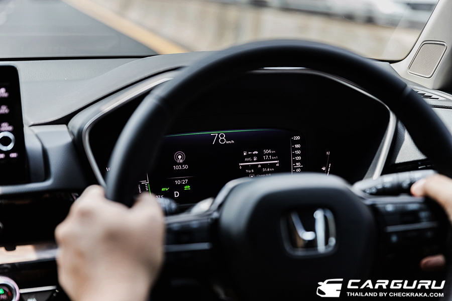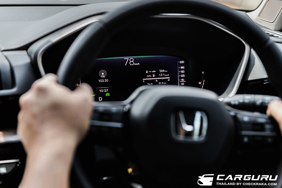 ดังนั้นการขับเจ้ารถถังคันใหญ่ CR-V ใหม่นี้จะสนุก มันและเร่งทันใจมาก ๆ ต่างจากรถยนต์ไฮบริดทั่วไป เพราะใช้มอเตอร์ไฟฟ้าขับเคลื่อนก่อน จึงมีอาการรอรอบน้อยและสามารถตอบสนองตามคันเร่งได้ทันทีเลยครับ แต่ว่าแม้จะเร่งได้ทันใจ ก็ไม่ถึงกับแรงเหมือนรถสปอรื์ต ยอมรับว่าขุมพลังนี้เมื่อมาอยู่ใน CR-V ก็จะมีความอืดกว่าใน CIVIC e:HEV ครับ แต่ก็แรงกว่ารุ่นก่อนหน้าที่เป็นเครื่องยนต์เบนซิน 2.4 ลิตร แน่นอน เผลอๆ อาจจะขับสนุกกว่ารุ่นดีเซลที่เคยมีก็ได้ครับ