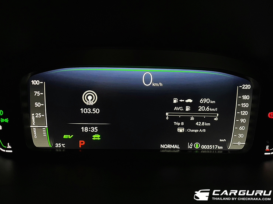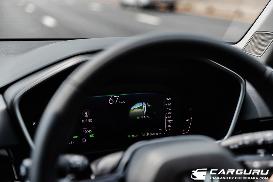 บนมาตรวัดยังสามารถเลือกดูระยะทาง A/B อัตราสิ้นเปลือง โฟว์ชาร์จการทำงานของระบบ Fully Hybrid และแสดงสถานะความปลอดภัยเมื่อใช้งาน HondaSENSING เช่น ระบบ Adeptive Cruise control ระบบเตือนและรักษารถในอยู่ในเลยดึงกลับ เป็นต้น