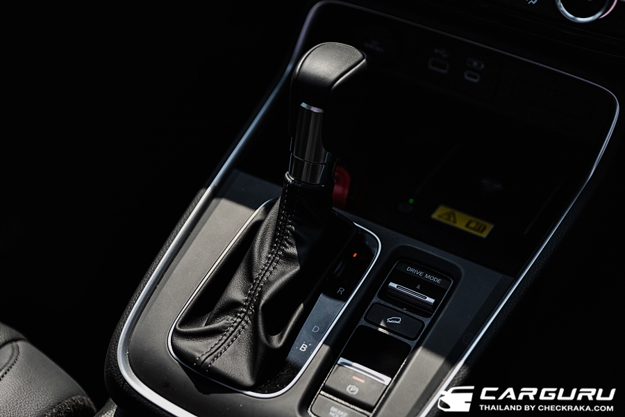 หัวเกียร์หุ่มหนังที่ฐานเกียร์ที่เป็นวัสดุดำด้านไม่สะท้อนตาเวลาเจอแดดส่องตรง ๆ และมีปุ่มปรับโหมดขับขี่, ปุ่มระบบเบรกไฟฟ้าและ Auto hold ส่วนด้านในมีช่องวางของและอุปกรณ์ชาร์จไฟแบบไร้สาย (Wireless Charger) ระบบเครื่องเสียงความบังเทิงจอสัมผัสแบบ Advanced Touch ขนาด 9 นิ้ว รองรับ Apple CarPlay แบบไร้สาย และรองรับ Android Auto ต้องเสียบสาย พร้อมรองรับระบบสั่งการด้วยเสียง Siri และ Android Auto ในรุ่น ES นี้ยังเป็นลำโพงธรรมดาที่ให้พลังเสียงออกกลาง ๆ และแหลม มีทุ้ม ๆ บ้าง แต่ไม่เยอะมาก แม้จะยังไม่ใช้ระบบ BOSE เหมือนในรุ่น RS แต่ก็พอฟังได้สบาย ๆ ครับ