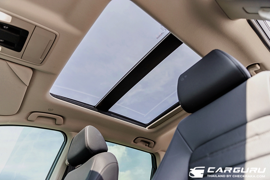 บนเพดานตอนหน้ามีไฟเก๋ง LED กล่องใส่แว่นตา กระจกมองหลังปรับแสงอัตโนมัติ ที่บังแดดพร้อมกระจกส่องทั้ง 2 ฝั่งแต่เป็นไฟสีส้มธรรมดา ส่วนตอนหลังมีไฟ LED 2 ตำแหน่ง และในส่วนหลังคาแก้วนั้นเมื่อเปิดสุดจะยาวจนถึงผู้โดยสารตอนหลัง แต่ก็ไม่มีผลกระทบกับแสงแดดมากนักยังมีส่วนหลังคาทึบในช่วงศีรษะ ทำให้ไม่ร้อนหัวเวลาเปิดม่านบังหลังคา