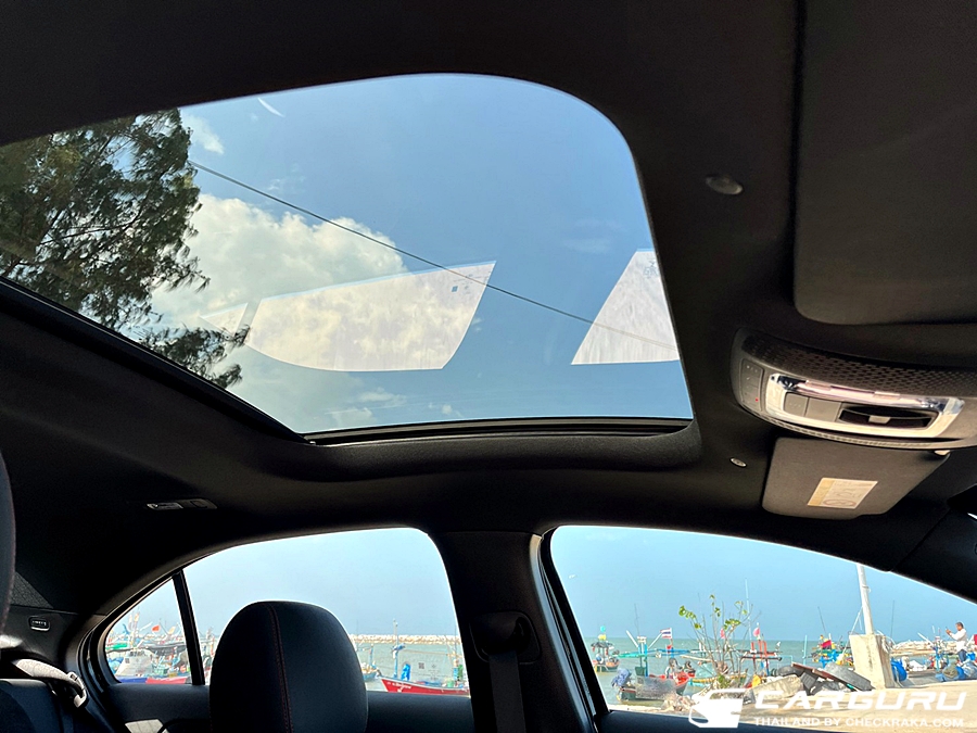 มาถึงระบบปรับอากาศเป็นอัตโนัติแยกปรับอุณหภูมิซ้าย-ขวา มีช่องแอร์หลังมาให้แล้ว ในการปรับอุณหภูมิหากปรับไว้สูงกว่า 22 องศาฯ จะอุ่นทันที จากที่ใช้งานต้องปรับอยู่แถว ๆ 18 - 20 องศาฯ ความเย็นกำลังดีครับ แต่เมื่อเจอแดดส่องตรง ๆ บนหลังคาที่เป็นกระจกแก้วนั้น แม้จะมีระบบกันแสง UV และแผ่นกันแสงแต่ความร้อนก็ยังระอุอยู่ บวกกับเพดานหลังคาที่ต่ำเกือบติดศีรษะผู้ขับทำให้ "หัวร้อน" หน่อย ๆ ยังดีที่ระบบแอร์เย็นฉ่ำมาก จึงพอรับได้ครับ