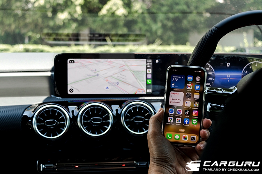 ระบบจอแสดงผลที่มี MBUX7 แบบเดียวกับใน EQS แต่เล็กกว่า ใช้งานง่ายชัดเจนแสดงผลการทำงานของรถ โหมดการขับขี่ เชื่อมต่อ AppleCarPlay และ Andriod Auto แบบไร้สายแล้ว มาพร้อมกับแท่นชาร์จไร้สาย ช่อง USB Type-C ถึง 4 ช่อง รองรับคำสั่งเสียง 27 ภาษารวมถึงภาษาไทย ใช้งานด้วยคำว่า "สวัสดี เมอร์เซเดส" ย้ำว่าต้องพูดเป็น เมอร์-เซ-เดส จึงจะคุยกันรู้เรื่อง ส่วนคำสั่งนั้น เนืองจากเป็นรถใหม่มาก ระบบ MBUX7 จะจดจำเรียนรู้ผู้ขับขี่ด้วย AI จึงยังฟังคำสั่งไม่ค่อยรู้เรื่อง สั่งได้แค่เพียง "ปรับอุณหภูมิแอร์" และ "เปิดวิทยุ" ส่วนคำสั่ง "เปิดหลังคาหรือนำทาง" ได้ลองแล้วยังไม่สามารถทำได้