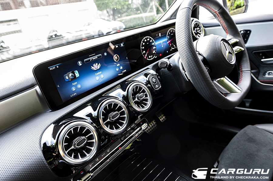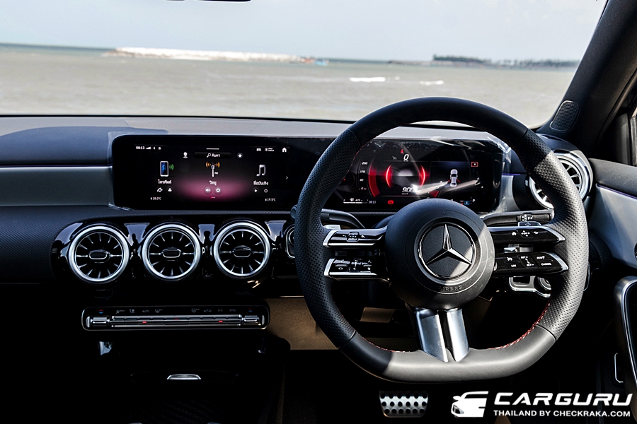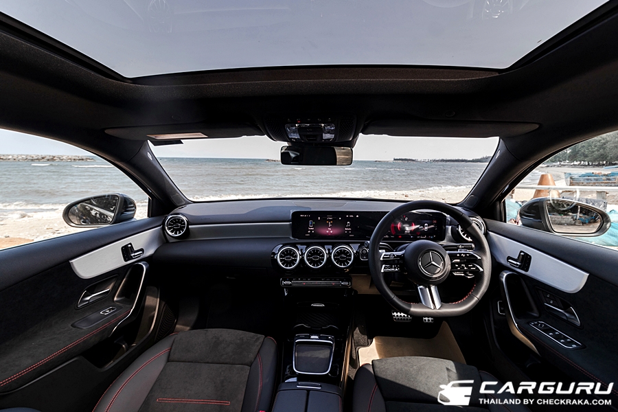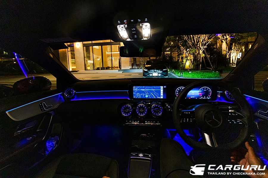 ภายในพวงมาลัยมัลติฟังก์ชันดีไซน์ใหม่สไตล์สปอร์ต ตกแต่งด้วยหนัง Nappa เสริมความดุดันด้วยเบาะหุ้มหนัง ARTICO สไตล์สปอร์ต สลับ MICROCUT microfibre สีดำด้ายแดงmemory seat และระบบดันหลัง 4 ทิศทาง ใหม่ “MBUX7” ที่เพิ่มระบบ AI (Artificial intelligence) ซึ่งสามารถเรียนรู้และประเมินพฤติกรรมและการใช้งานของแต่ละผู้ขับได้ และมาตรวัด All-digital instrument display ขนาด 10.25 นิ้ว ไฟ Ambient Light รอบห้องโดยสารแบบปรับได้ 64 เฉด