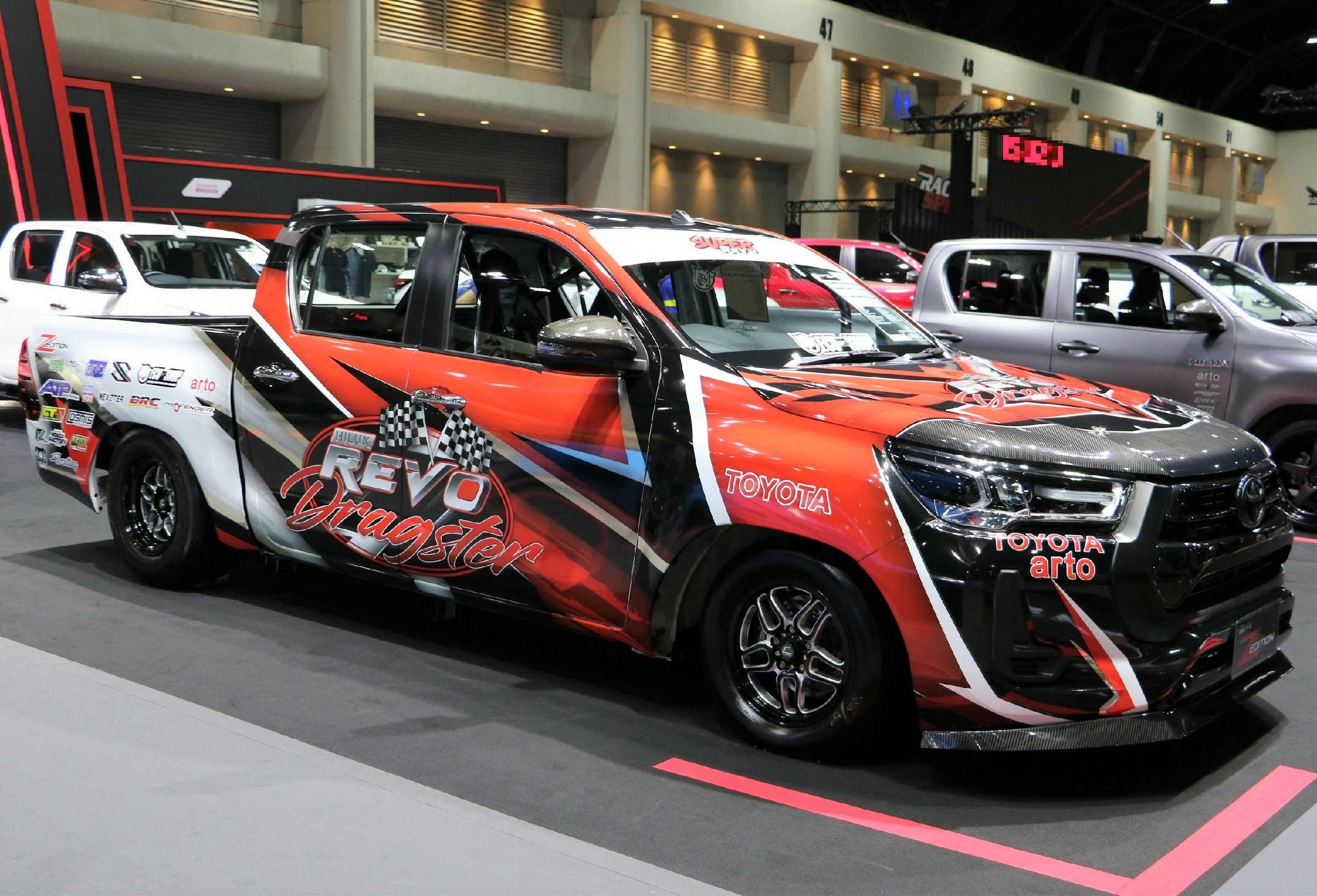 ส่วน โตโยต้า นำรถยนต์หลากหลายรุ่นโชว์ภายใต้แนวคิด “ปลดล็อกสไตล์ เลือกแต่งได้อันลิมิต” (Multi-Desire – Multi Style) โดยปีนี้โตโยต้านำเสนอการแต่งรถในหลากหลายรูปแบบทั้งรถเก๋ง รถกระบะ และรถ MPV มาโชว์ภายในงาน เพื่อสร้างแรงบันดาลใจให้กับผู้ชื่นชอบการแต่งรถ นำโดยรถยนต์ตกแต่งพิเศษ Corolla ALTIS ชุดแต่ง “USDM TURBO” – YARIS ชุดแต่งพิเศษ “SILVER BULLET” และ “FAST LINE” – VELOZ ชุดแต่ง BLACK FOREST – Hilux REVO ชุดแต่งพิเศษ “REVO 54TH” , “REVO HI PERFORMANCE & STYLE” , “REVO Dragster” , “REVO Twin Turbo” และ “REVO Z Runner” และ Fortuner Leader ชุดแต่ง Modellista นำเสนอเอกลักษณ์เฉพาะตัว (Tokyo Style) พร้อมความพรีเมียม โดดเด่นไม่เหมือนใคร พลาดไม่ได้กับข้อเสนอที่ดีที่สุด ซึ่งโตโยต้าตั้งใจมอบให้กับลูกค้าที่จองรถยนต์ทุกรุ่นภายในงาน