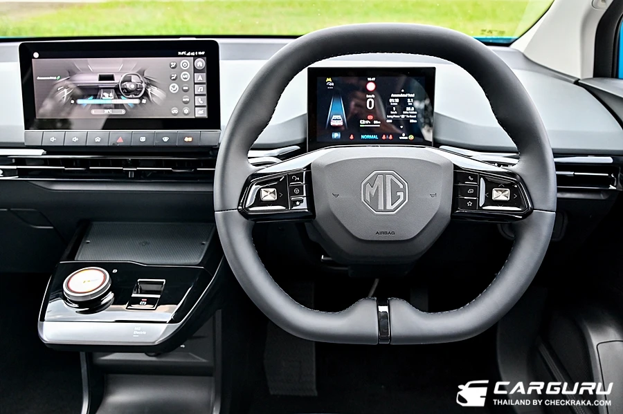 มาตรวัดแสดงรายละเอียดเยอะยัดเต็มจอที่มีขนาดเล็กพอ ๆ กับ MG4 ทั้งที่ตัวกรอบออกจะใหญ่แต่พื้นที่โชว์จอแสดงผลน้อยนิด แต่ไม่เป็นไรครับ เพราะว่ารายละเอียดต่าง ๆ ยังมองได้ชัดแจ๋ว แม้กลางวัน ส่วนกลางคืนนั้น อาจจะต้องคาดว่าแสงสว่างแยงตาน้อยกว่าใน MG4 เพราะว่าในวันที่เขียนบทความนั้นรถทดสอบยังไม่ปล่อยให้ทดลองแบบเดี่ยวจึงไม่ได้ขับช่วงกลางคืน แต่ว่าความเฟี้ยวคือ มีระบบจับเวลาวัดอัตราเร่งออกตัวจาก 0 - 100 กม./ชม.มาให้ในตัวด้วย เรียกว่าอยากลองชาเลนจ์ก็เปิดระบบวัดได้ทันที่