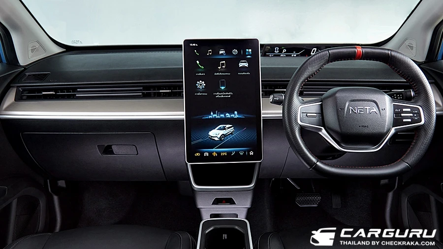 ในเนต้าแม้ว่าภายนอกจะไม่น่ารักเท่าใครแต่ภายในไม่น้อยหน้ามาในความเป้นสปอร์ตเต็มขั้น เริ่มด้วยพวงมาลัยสปอร์ตแบบห้วท้ายตัดเหมือนใน MG4 เบาะทรงสปอร์ตชัดเจน จอกลางที่หมุนได้ทั้งแนวนอนและตั้ง ตำแหน่งและการจัดวางต่าง ๆ นับว่าสะดวกสสบายใช้งานง่ายไม่ซับซ้อนและให้ความกว้างขวางไม่แพ้รุ่นอื่น ๆ เรียกว่าหน้าตาดูเรียบ ๆ แต่ข้างในความสปอร์ตเพียบแบบจัดเต็มนะครับ เอ๊ะหรือว่าไปได้ DNA จากรุ่นพี่ NETA S หนอ?