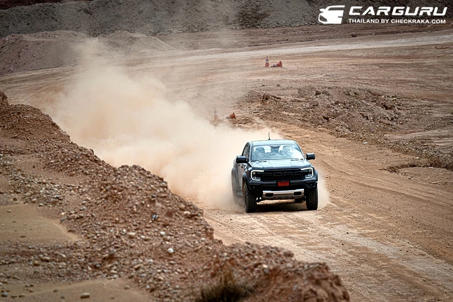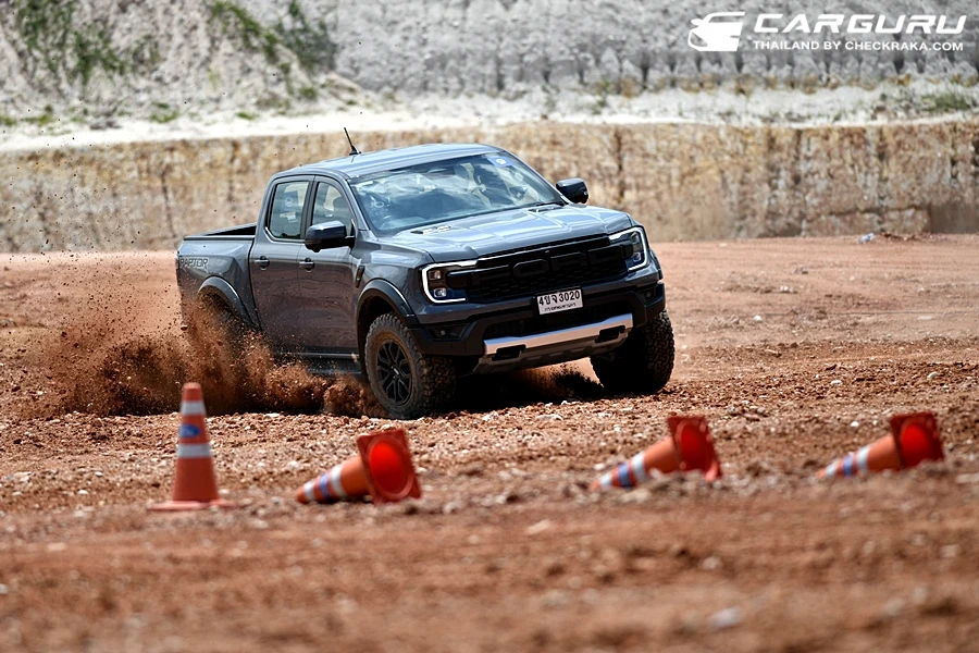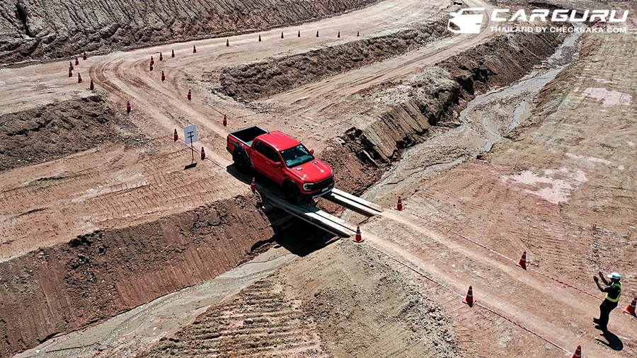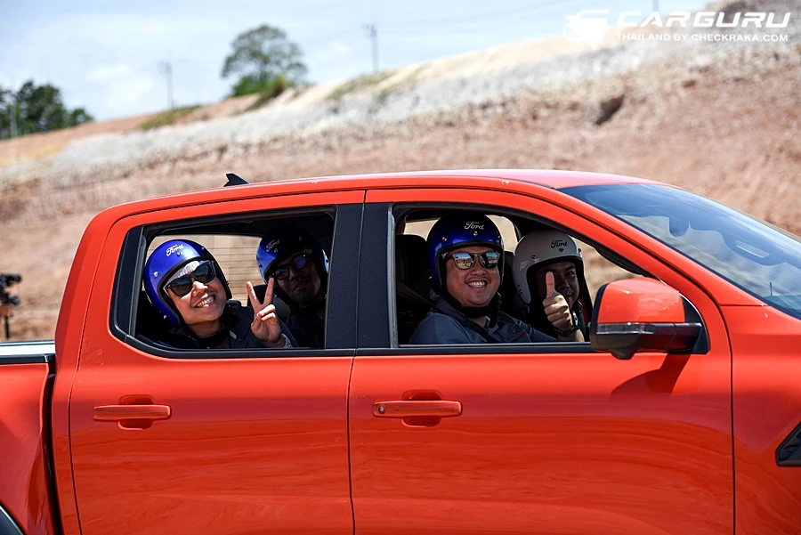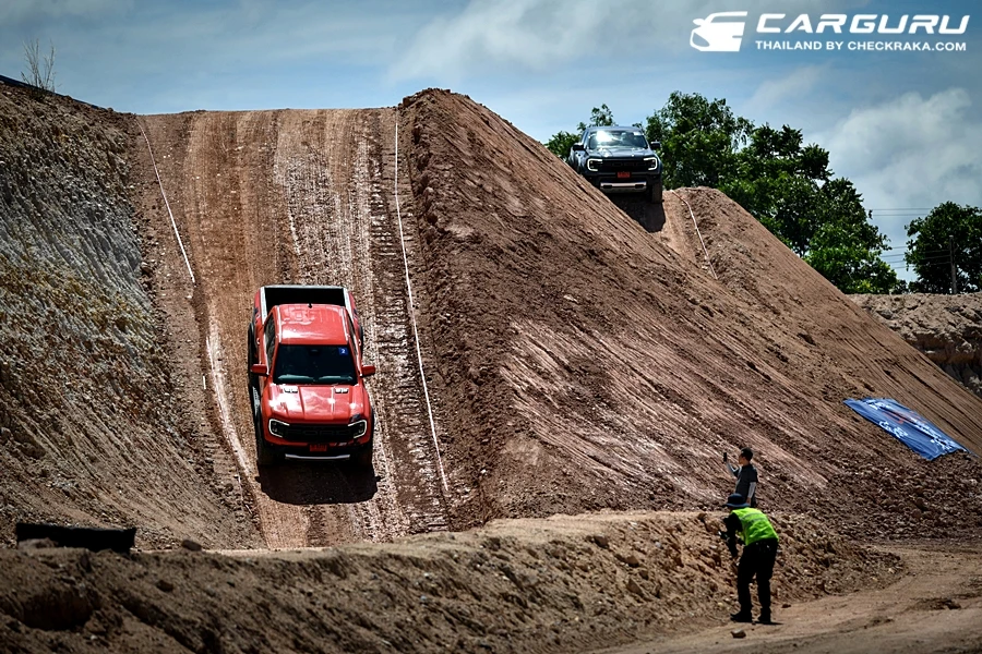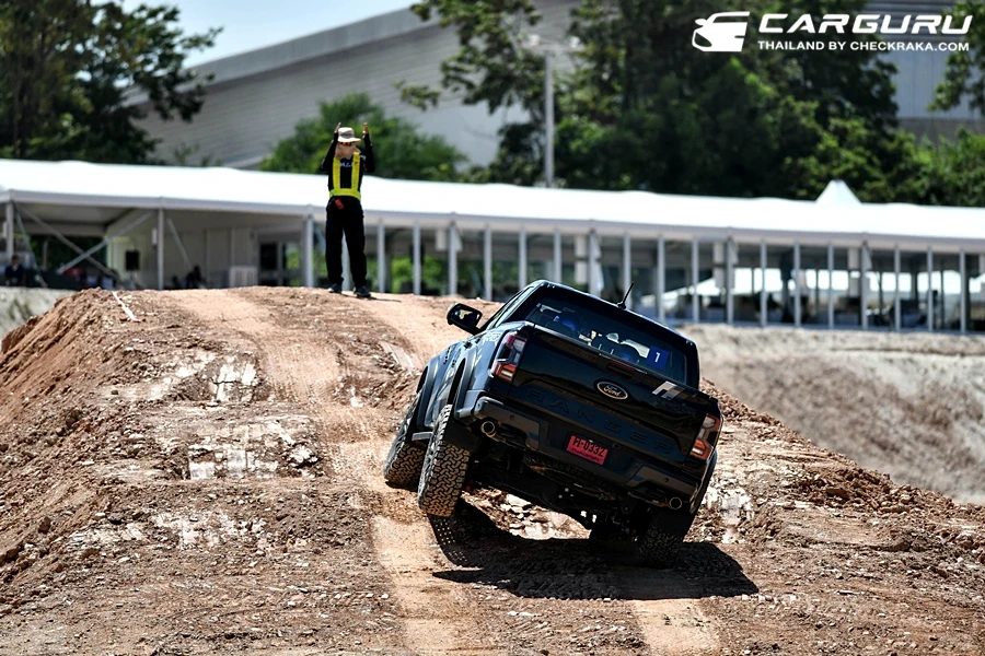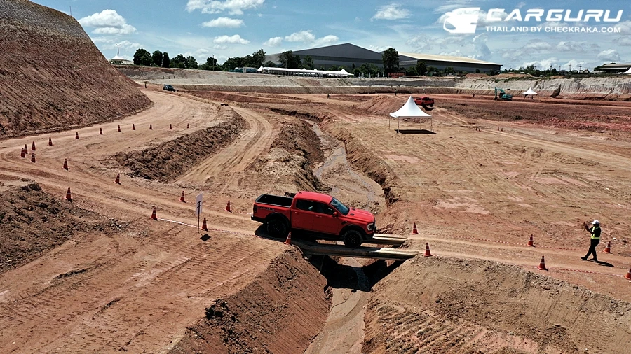 ฟอร์ดเปิดสนามออฟโร้ดให้ลองลุยแบบกับ Raptor ทั้ง 2 ขุมพลังเบนซินวี 6 สูบ และดีเซล 2.0 ลิตร บอกเลยลุยแบบนี้ดีเซลขับง่ายกว่า เบนซินแรงจนล้น แต่ก็มันไม่แพ้กัน เส้นทางทดสอบแบ่งเป็นเนินสูง ใช่กล้อง 360 ในการขับ พร้อมทดลองใช้ระบบ 4L ทั้ง 2 ขุมพลังเติมคันเร่งเบา ๆ ก็ขึ้นได้สบาย และใช้กล้องมองรอบคันในการข้ามสะพานปูนบาง ๆ นับว่าภาพจากกล้องนั้นมองง่ายและชัดเจนมาก