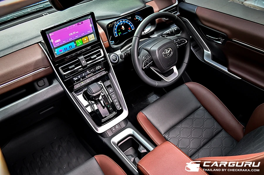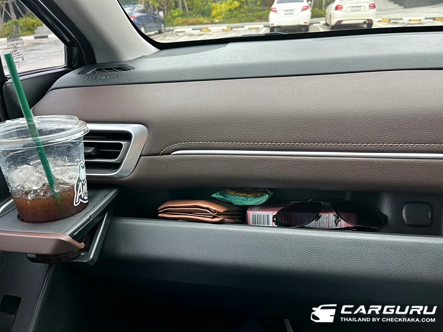โดยรวมแล้วภายในนั้นการออกแบบจัดวางตำแหน่งใช้งานต่าง ๆ รวมถึงออปชั่นใช้งานเหมาะะสมดีครับ ยิ้งที่วางแก้วน้ำหรือขวดน้ำเยอะมาก ๆ แต่ติดตรงที่วัสดุหุ้มเบาะ ที่วางแขนตอนหน้าระดับต่ำไป และฝาเปิดกล่งเก็บของใต้ที่วางแขนแบบด้านข้างที่แปลก ๆ ตาไม่คุ้นเคยนัก โต๊ะพับตรงกลางเบาะแถวที่สามดูบอบบางไป กล้องแสดงภาพรอบคันไม่ชัดและกดเปลี่ยนมุมมองบนจอไม่ได้ ต้องกดที่สวิตช์ด้านข้างใกล้เข่าขวาคนขับ และเซ็นเซอร์ประตูท้ายแบบใช้เท้ากวาดที่ยัง "หาตำแหน่งยาก" ต้องทำหลายครั้งกว่าจะติดและต้องตรงตำแหน่งแบบพอดี ๆ อีกด้วย