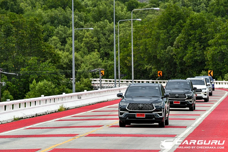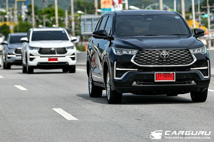 ในทริปนี้มีรถ All new Innova Zenix ทั้งหมด 10 กว่าคัน พร้อมสื่อนั่งในรถ 2 - 4 คนต่อ 1 คัน ครบทั้ง 2 รุ่นย่อย ซึ่งคันที่ได้ทดสอบเป็นรุ่น Premium นั่ง 4 คน สลับกันขับขี่ เส้นทาง TDEX Toyota ALIVE บางนา กม.3 ถึง โรงแรมเมอเคียว ระยอง ระยทางรวมไปกลับ 440 กม.เริ่มต้นจากการนั่งเบาะแถวสองและแถวสามก่อนเลยครับ