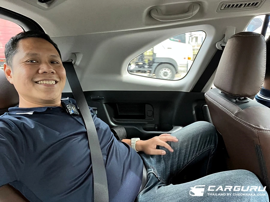 เบาะแถวที่สามนั่งสบายน้อยที่สุด แต่ถือว่านั่งได้จริงแม้ผู้ทดสอบสูง 176 ซม. ตัวใหญ่ยัง "ยัด" ตัวเข้าไปโดยการ เดินผ่านช่องว่างระหว่างเบาะตอนสองได้ เมื่อมีคนนั่งอถวที่สอง พื้นที่วางขาและหัวเข่าชิดกับเบาะพิงตอนกลางพอดี แต่ตัวเบาะยั่งได้แบบหลวม ๆ รวมถึงเพดานโปร่งกว่าที่คิด และวิสัยทัศนะไม่ค่อยอึดอัดมากนัก ยิ่งเปิดหลังคาพาโนรามิครูปยิ่งโปร่งโล่งสบายตามากขึ้นไปอีกครับ ใครที่ชอบเดินทางแบบครอบครัวนั่งครบทุกแถวบ่อย แนะนำว่า หากงบประมาณเพียงพอมารุ่น Premium เลยครับ