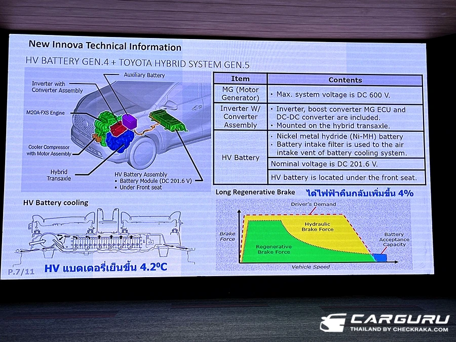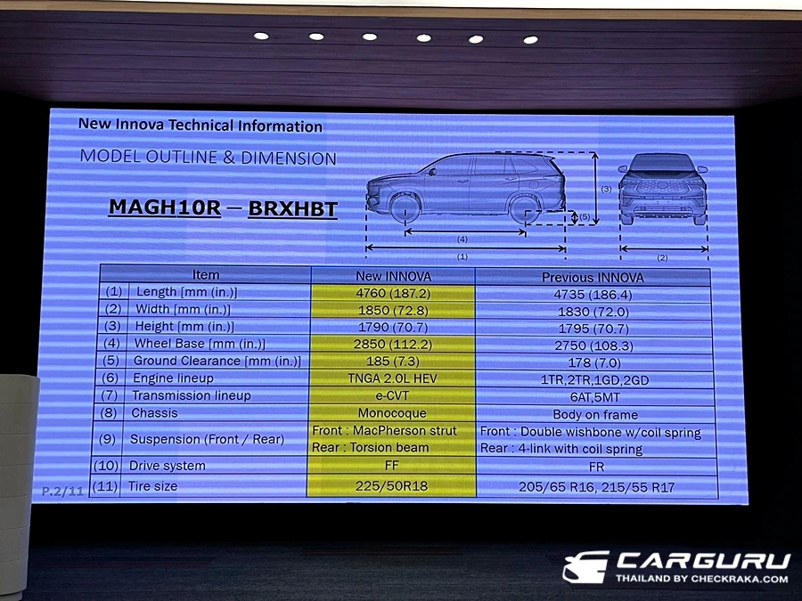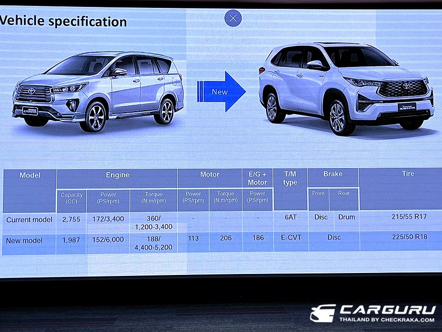 All New Toyota Innova Zenix 2.0 ลิตรไฮบริด จาก Lexus UX250h กำลังรวมสูงสุด 186 แรงม้า E-CVT ขับเคลื่อนล้อหน้า จุดเด่นคือ ใช้พื้นฐาน TNGA ช่วงล่างแบบรถเก๋งด้านหน้าแมคเฟอร์สันสตรัท ด้านหลังทอร์ชั่นบีม ล้ออัลลอย 18 นิ้ว ภายในมาตรวัดและจอความบันเทิงใหม่ เบาะแถวสองแยกแบบ Captain Seat ฝาท้ายไฟฟ้าระบบ Hand Free และ เบรกมือไฟฟ้าพร้อม Auto Hold