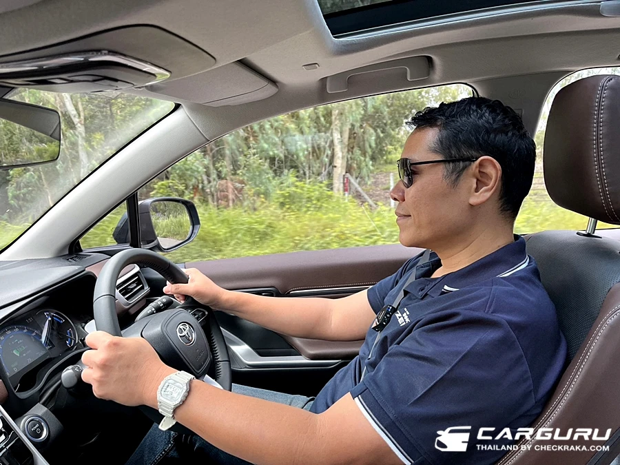 ด้วยช่วงล่างนุ่มนวลนั่งสบาย ไม่กระเด้งหรือกระแทกเวลาตกหลุมหรือกระโดดคอสะพาน เน้นไปทาง "นุ่มนวล" ตรงโจทย์ในการเดินทางแบบครบครัว ส่วนการเข้าโค้งหรือการขับขี่แบบเปลี่ยนเลนหรือหักหลบสิ่งกีดขวาง ก็อาจมีอาการนุ่มจนโคลงเคลงบ้างตามรูปแบบตัวถังรถ แต่โดยรวมถือว่า ไม่โยนหรือย้วยและให้ความรู้สึกเหมือนขับรถยนต์ซีดานครับ