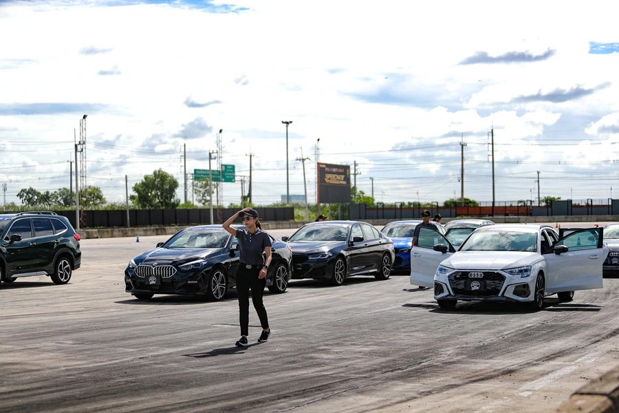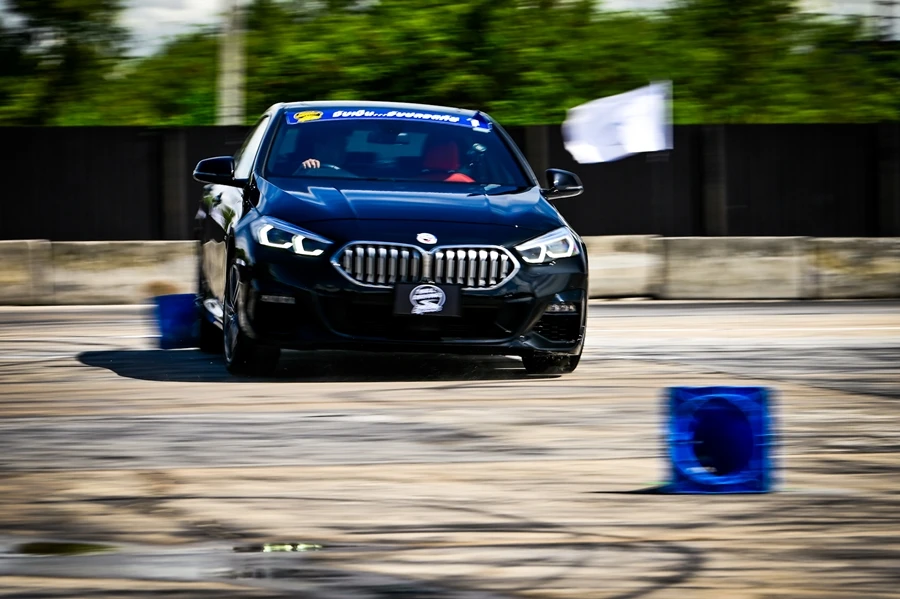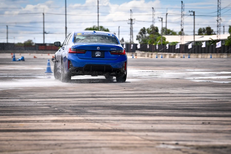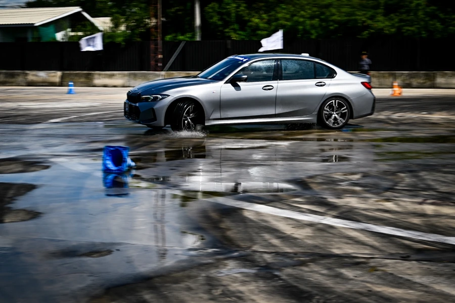 หลังจากลงทะเบียนและอบรมภาคทฤษฎีกันในช่วงเช้า มีทบทวนเรื่องพื้นฐานการขับตั้งแต่ท่านั่งและกติกาและมารยาทระหว่างทำกิจกรรม จากนั้นแบ่งกลุ่มเพื่อแยกย้ายเข้าสถานีต่างๆ และสลับเปลี่ยน ผู้เขียนเริ่มที่สถานี Oversteer - Drifting กับรถ BMW รุ่นขับเคลื่อนล้อหลัง เป็นการเรียนรู้อาการโอเวอร์สเตียร์และแก้ไขรถให้กลับคืน โดยให้ขับบนพื้นลื่นที่ราดน้ำสบู่ไว้รอบเลย์เอ้าท์วงกลม ใช้ความเร็วต่ำไหลตามโค้งไปเรื่อยจนถึงจังหวะที่ต้องเหยียบคันเร่งจมเท้าเพื่อให้ท้ายรถออกอาการโอเวอร์สเตียร์หรือบานออก แล้วเคาเตอร์พวงมาลัยสวนเพื่อแก้อาการ ถ้าทำได้คล่องก็สามารถข้ามไปสู่ขั้นตอนการดริฟติ้งได้ต่อเนื่อง เรียนรู้และทดสองปฎิบัติกันจนครบเวลสก็ขยับไปสถานี Gymkhana ต่อ
