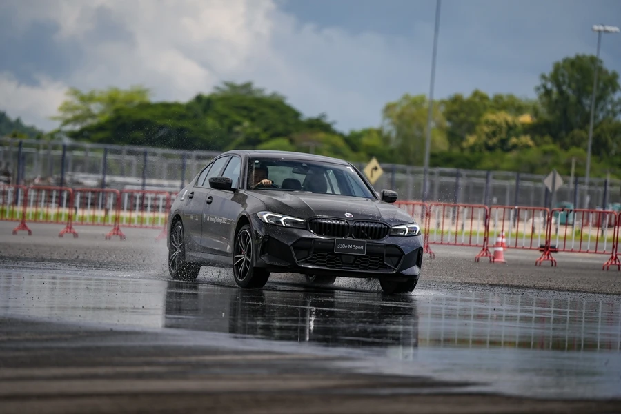 โดยวันแรกผู้เขียนเริ่มต้นกับการขับ Gymkhana Dirt ด้วยรถบีเอ็มดับเบิลยู iX xDrive40 Sport โดดเด่นด้วยดีไซน์ทรงพลัง  คงความเรียบง่ายและบึกบึนสไตล์ SAV มาพร้อมระบบช่วยเหลือผู้ขับและนวัตกรรมหลากหลายเหนือกว่ารถยนต์บีเอ็มดับเบิลยูทุกรุ่น ด้วยความสามารถในการคงแรงบิดได้แม้ระหว่างรอบสูง นับเป็นประสบการณ์แปลกใหม่ที่ได้ขับรถพลังไฟฟ้าจริงจังและเน้นสมรรถนะการเข้าไลน์บนทางฝุ่นซึ่งมีทั้งหญ้า, เลน และฝุ่นแห้งตัวรถให้การตอบสนองที่ยอดเยี่ยมฉับไว ระบบช่วยเหลือต่างๆ ทำงานสอดประสานเพื่อให้รถเคลื่อนตัวได้อย่างลื่นไหลตามการควบคุมอย่างแม่นยำ จากนั้นมาต่อด้วยการขับแก้อาการโอเวอร์สเตียร์บนพื้นผิวที่ลื่นจากการรดน้ำด้วยรถบีเอ็มดับเบิลยู 330e M Sport สปอร์ตซีดานยอดนิยม เครื่องยนต์เบนซินเทคโนโลยี TwinPower Turbo และระบบปลั๊กอินไฮบริด สถานีนี้สร้างความสนุกสนานในการบังคับควบคุมหาจังหวะที่พอดีของการแก้อาการท้ายปัดด้วยการยกคนเร่งเค้าเตอร์พวงมาลัย เพื่อให้รถกลับคืนและไปต่อได้ ซึ่งเป็นการจำลองเหตุการณ์ที่เกิดขึ้นได้เมื่อต้องเจอกับสภาพพื้นผิวถนนที่ลื่นมาก ผ่านไป 2 สถานีในครึ่งวันแรก พักกลางวันแล้วมาต่อภาคบ่ายด้วยสถานีการแฮนด์เดอริ่งเข้าโค้งต่อเนื่อง ตลอดจนขับตามไอเดียไลน์ของแทร็ค เรียนรู้จุดผ่อนความเร็ว เบรกเบาและหนัก ตลอดจนเอเปกของโค้งที่แตกต่างโดยใช้รถบีเอ็มดับเบิลยู M340i xDrive ใหม่ โดดเด่นด้วยระบบควบคุมที่แม่นยำและเทคโนโลยีการขับใหม่ล่าสุดพร้อมการยกระดับอีกขั้นด้วยเครื่องยนต์สมรรถนะสูง สถานีนี้ใช้โค้งของสนามช่วงระหว่าง 5 - 12 ซึ่งเป็นการปรับความคุ้นชินกับตัวรถเน้นเข้าไลน์ได้อย่างถูกต้อง ถอนคันเร่งในจุดที่ควร และเบาเบรกให้พอดีก่อนเข้าโค้ง ตลอดจนขับกอดเอเปกเพื่อส่งต่อออกจากโค้งด้วยความเร็วที่ต่อเนื่อง นับเป็นช่วงที่สนุกเร้าใจและขับซ้ำได้ไม่รู้เบื่อ ทั้งนี้เป็นการทยอยเนียนรู้ให้ครบถ้วยทุกองค์ประกอบของการขับแบบเต็มรอบก่อนที่จะไปลองของจริงในวันถัดไป