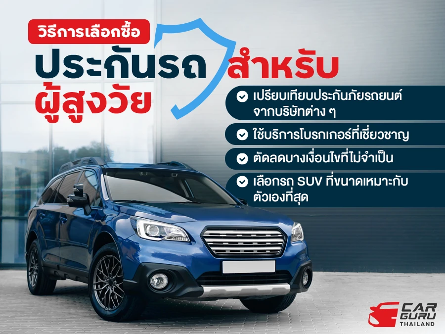 ถึงแม้จะมีรถดียังไง อุบัติเหตุ ก็สามารถเกิดขึ้นได้ทุกเมื่อ และเพื่อหลีกเลี่ยงปัญหาที่อาจจะเกิด การมีประกันภัยรถ SUV สำหรับผู้สูงวัย จึงเป็นสิ่งจำเป็นที่ควรมีติดรถไว้อุ่นใจกว่า ซึ่งบางบริษัทก็มีประกันภัยรถยนต์สำหรับผู้สูงอายุออกมาให้เลือก โดยการซื้อประกันภัยรถยนต์สำหรับผู้สูงวัย อาจมีความแตกต่างเล็กน้อยเมื่อเทียบกับกลุ่มอายุอื่น ๆ ดังนั้น ควรพิจารณาเรื่องต่าง ๆ ต่อไปนี้